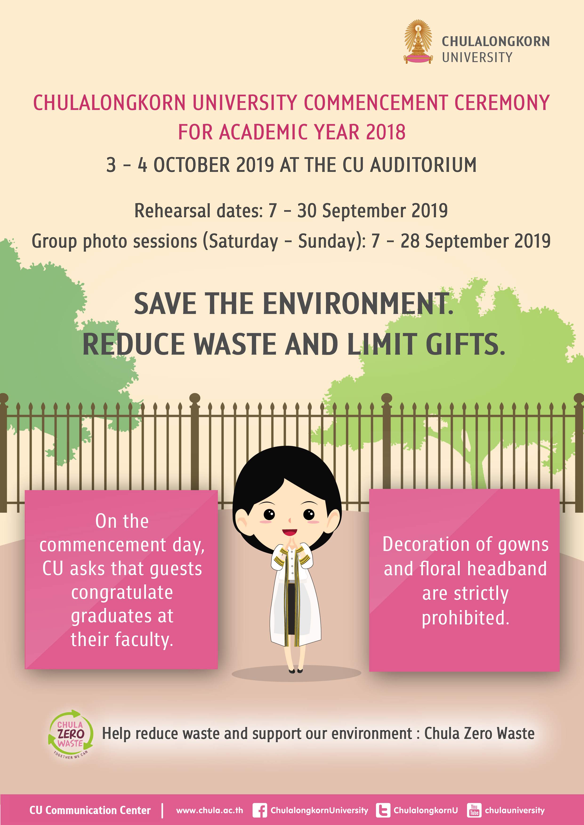 • The University asks that gifts and presents be kept at a minimum in order to help reduce waste and follow the Chula Zero Waste program.