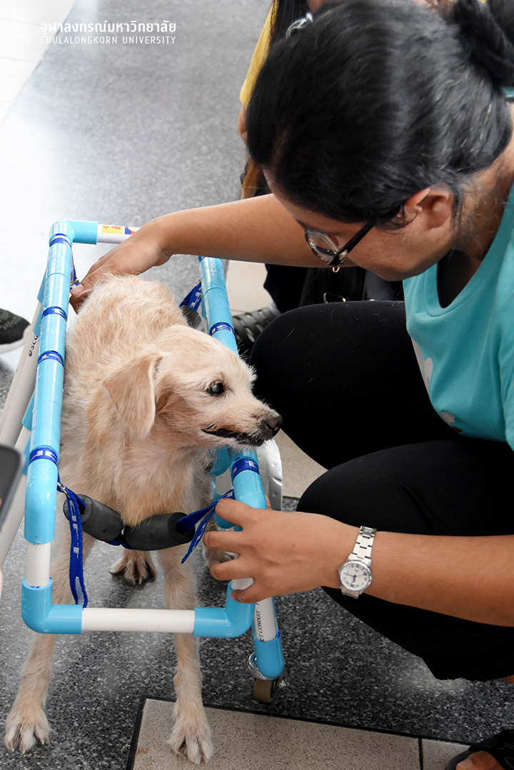 The Faculty of Veterinary Science, Chulalongkorn University, in collaboration with Professor Dr. Chakr Pichaironnarongsongkram Foundation, co-organized the “35th Wheel Chair We Share Project” for cats and dogs on Saturday, August 24, 2019 at the 60th Anniversary Building. The workshop was for students and volunteers to learn about making wheelchairs for disabled pets. The opening remark was given by Professor Dr. Sanipa Suradhat, Associate Dean (Policy and Planning Affairs), Faculty of Veterinary Science. Over 120 participants, with 32 pets, joined the session.