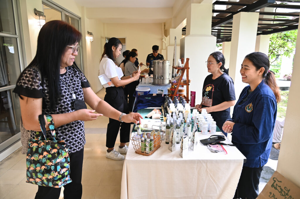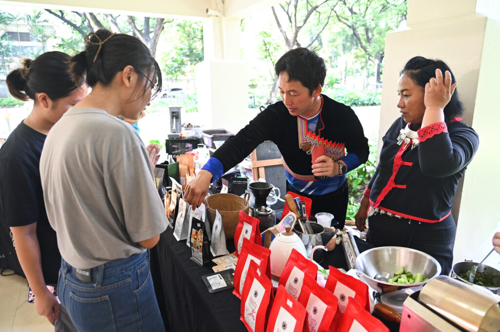 Additionally, a Nan Forest Restoration forum was held to discuss past lessons and new models for solving Nan forest problems, and a seminar on flooding in the northern region, which brought together volunteers to address flood problems and exchange information with experts in various fields including Assoc. Prof. Dr. Siridej Sujiva, Chulalongkorn University Vice President, Ms. Kul Panyawong, Mr. Chailuang Ditsathabamrung, a Nan volunteer and co-founder of the Nan Provincial Disaster Prevention and Mitigation Office, Mr. Anek Saensong, a Hmong farmer who owns sediment retention agriculture plots, and Mr. Narongrit Boonnak from Phu Talay Araya Volunteer. On this occasion, the Chula DSN invited upstream ethnic groups to set up booths selling agricultural produce and various products to the Chulalongkorn community. The atmosphere was lively and vibrant.