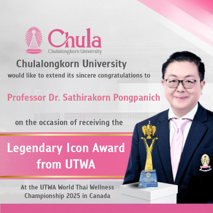 Chulalongkorn University extends its heartfelt congratulations to Professor Dr. Sathirakorn Pongpanich, Assistant to the President for Special Affairs at Chulalongkorn University, on being honored by the Universal Thai Wellness Association of Canada (UTWA) with the Legendary Icon Award at the UTWA – World Thai Wellness Championship 2025.