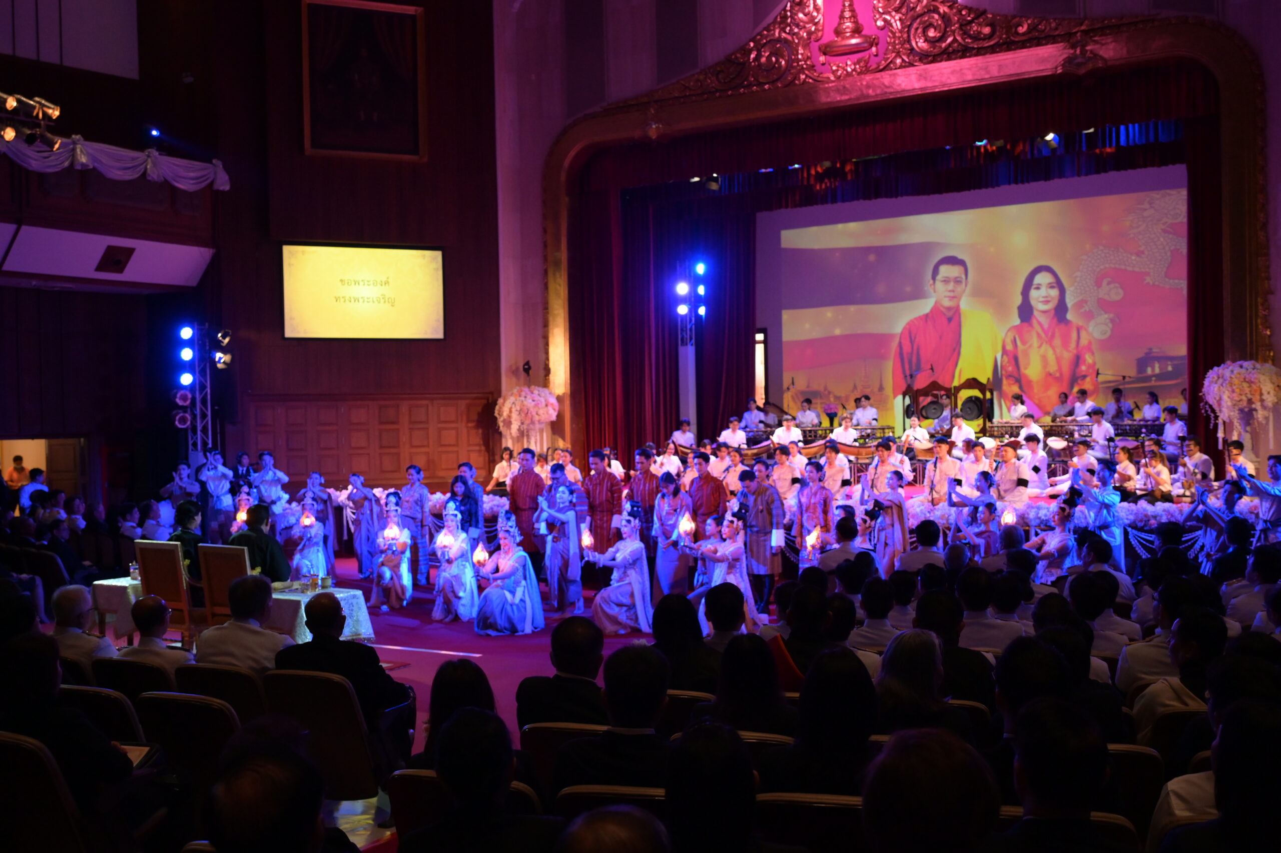 The programme featured cultural performances celebrating the enduring friendship between the Kingdom of Thailand and the Kingdom of Bhutan, including performances of the Bhutanese and Thai National Anthems, the “Maha Chulalongkorn Overture” by the ChulaThaiYO Ensemble, and a joint Thai–Bhutanese performance entitled “Rattanaboriban Romyen Machaanan Saung Phaendin”, symbolising enduring harmony under the benevolent reigns of both Kingdoms.