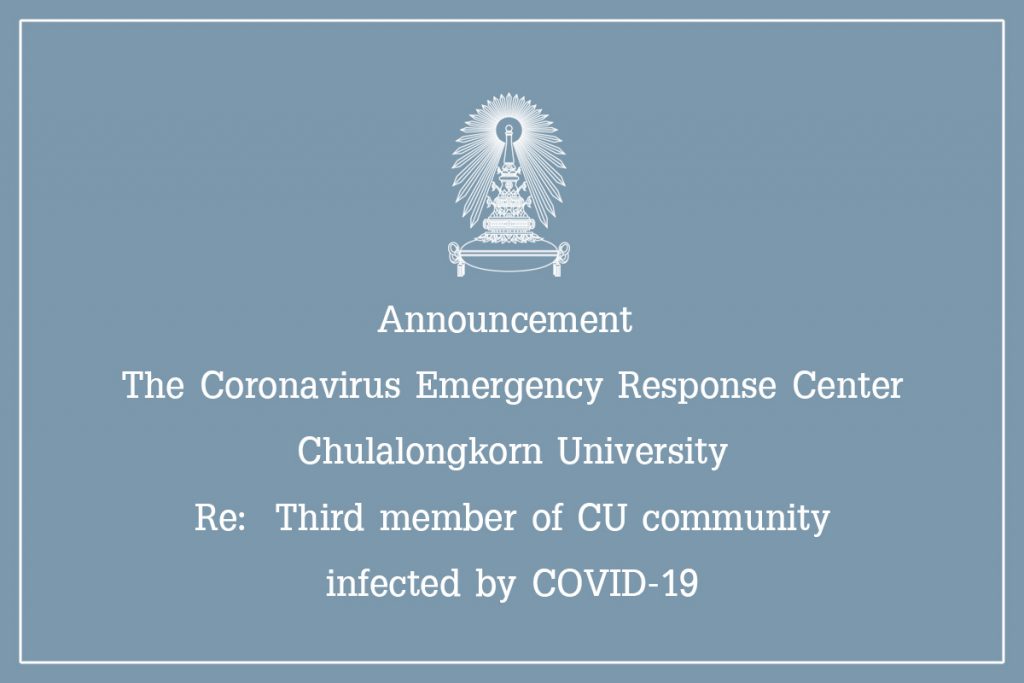 AnnouncementThe Coronavirus Emergency Response CenterChulalongkorn UniversityRe: Third member of CU community infected by COVID-19