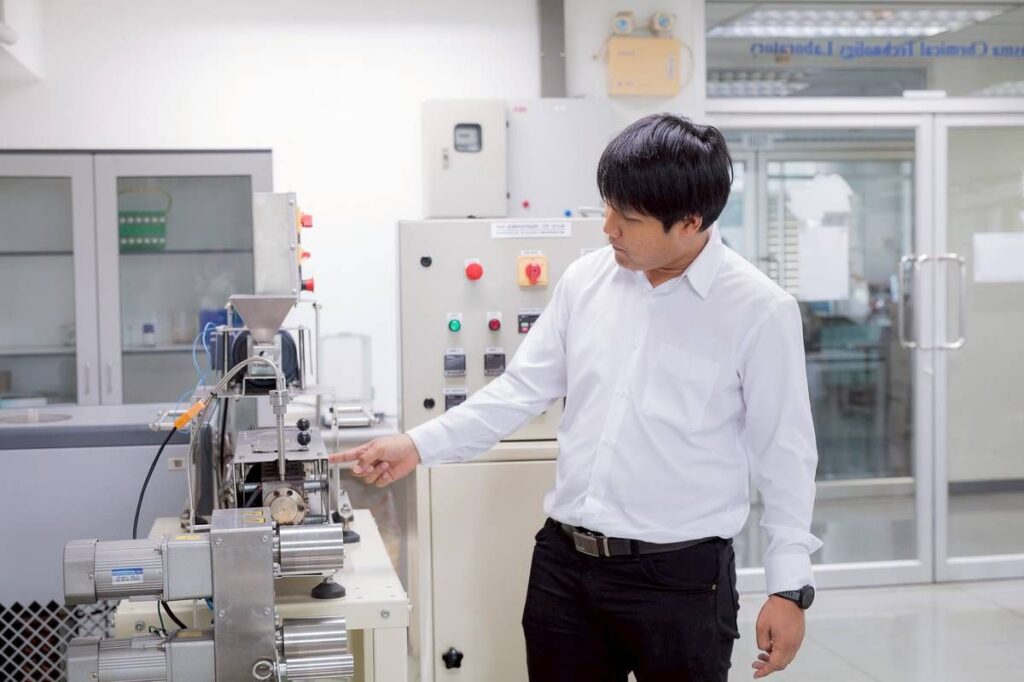การควบคุมคุณภาพ เป็นประเด็นสำคัญของงานวิจัยนี้ ดร.ณัฐพลอธิบายว่า อวนที่เก็บมาจากแต่ละพื้นที่มักมีความแตกต่างกันทั้งด้านอายุการใช้งาน ระดับการเสื่อมสภาพ และการปนเปื้อนของสิ่งสกปรกหรือโลหะหนัก ทำให้คุณสมบัติของวัตถุดิบไม่สม่ำเสมอ และยากต่อการนำไปพัฒนาเป็นวัสดุสำหรับงานวิศวกรรมโดยตรง ดังนั้น การเปลี่ยนอวนให้เป็น “เม็ดพลาสติกรีไซเคิล” จึงเป็นขั้นตอนสำคัญ เพราะช่วยให้สามารถควบคุมคุณภาพได้ดีขึ้น และทำให้สมบัติต่าง ๆ ของวัสดุมีความคงที่มากพอสำหรับการพัฒนาชิ้นงานต้นแบบ