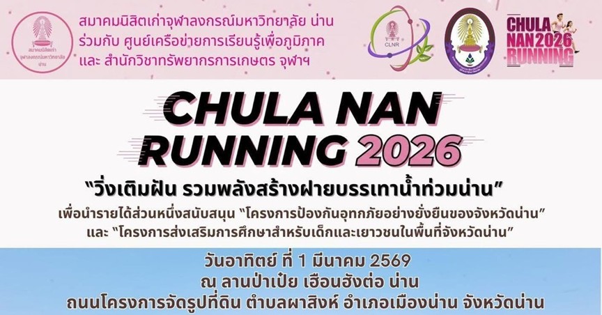 30 มกราคม 2569 เวลา 06.00 – 09.00 น. ณ Park @ Siam ด้านข้างศูนย์หนังสือจุฬาฯ สยามสแควร์