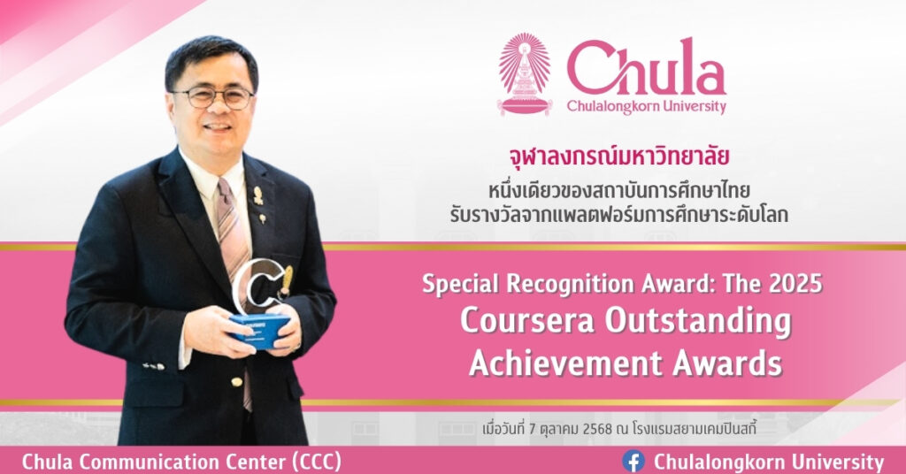 จุฬาฯ หนึ่งเดียวของไทย คว้ารางวัล Coursera Special Recognition Award 2025 โดดเด่นในด้านการสร้างนวัตกรรมทางการศึกษาเพื่อสังคม