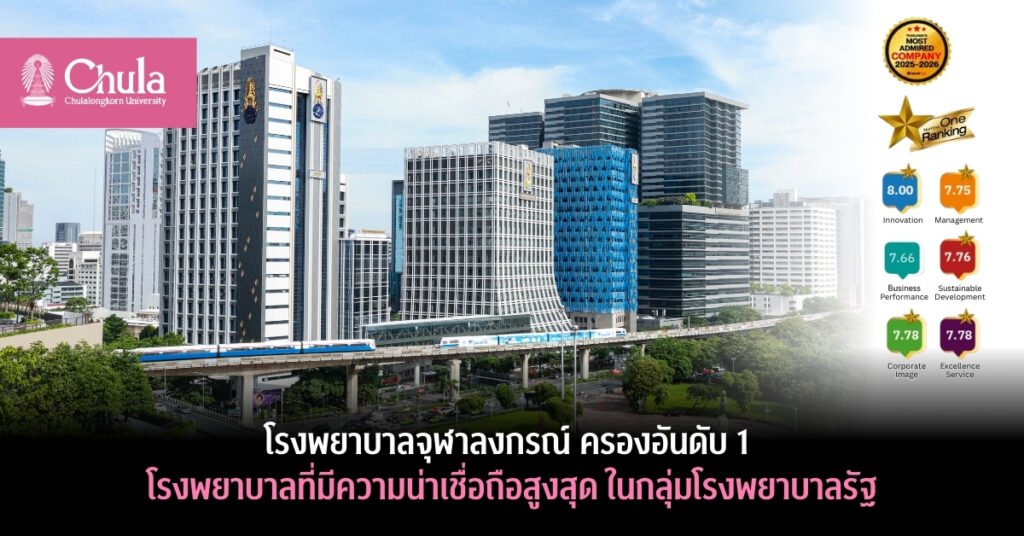 โรงพยาบาลจุฬาลงกรณ์ ครองอันดับ 1 โรงพยาบาลที่มีความน่าเชื่อถือสูงสุด ในกลุ่มโรงพยาบาลรัฐ