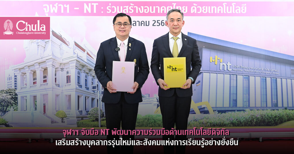 จุฬาฯ จับมือ NT พัฒนาความร่วมมือด้านเทคโนโลยีดิจิทัล เสริมสร้างบุคลากรรุ่นใหม่และสังคมแห่งการเรียนรู้อย่างยั่งยืน
