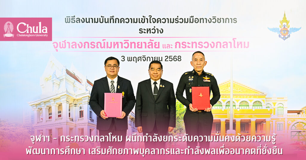จุฬาฯ – กระทรวงกลาโหม ผนึกกำลังยกระดับความมั่นคงด้วยความรู้ พัฒนาการศึกษา เสริมศักยภาพบุคลากรและกำลังพลเพื่ออนาคตที่ยั่งยืน