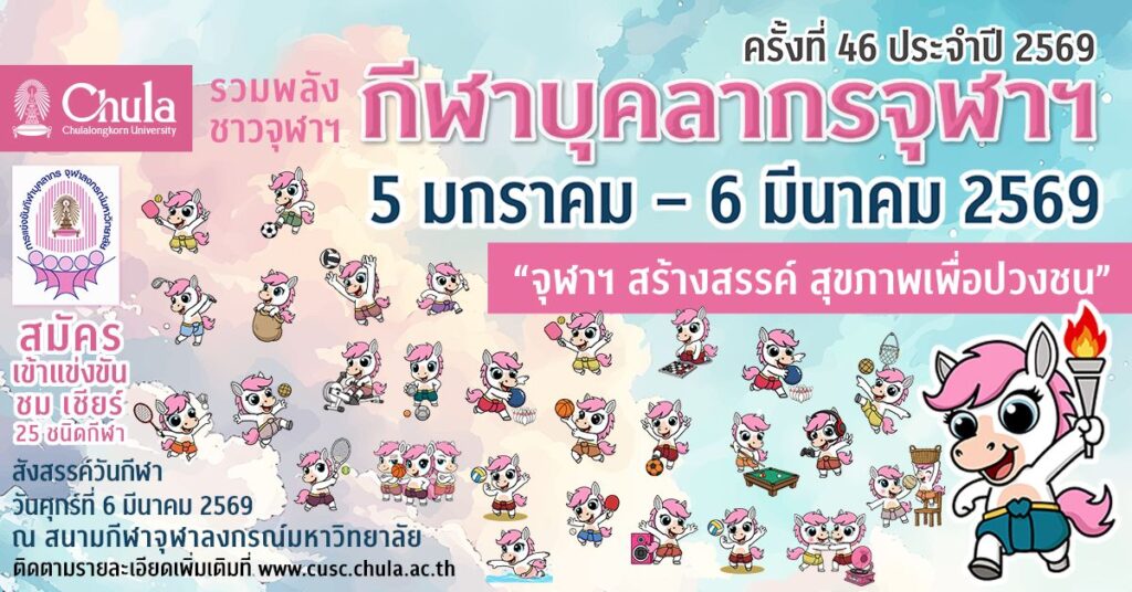 จุฬาฯ จัดการแข่งขันกีฬาบุคลากร ครั้งที่ 46 รวมพลังสามัคคี สร้างสุขภาพดีให้ชาวจุฬาฯ เชิญแข่งขัน ชมและเชียร์ 25 ชนิดกีฬา