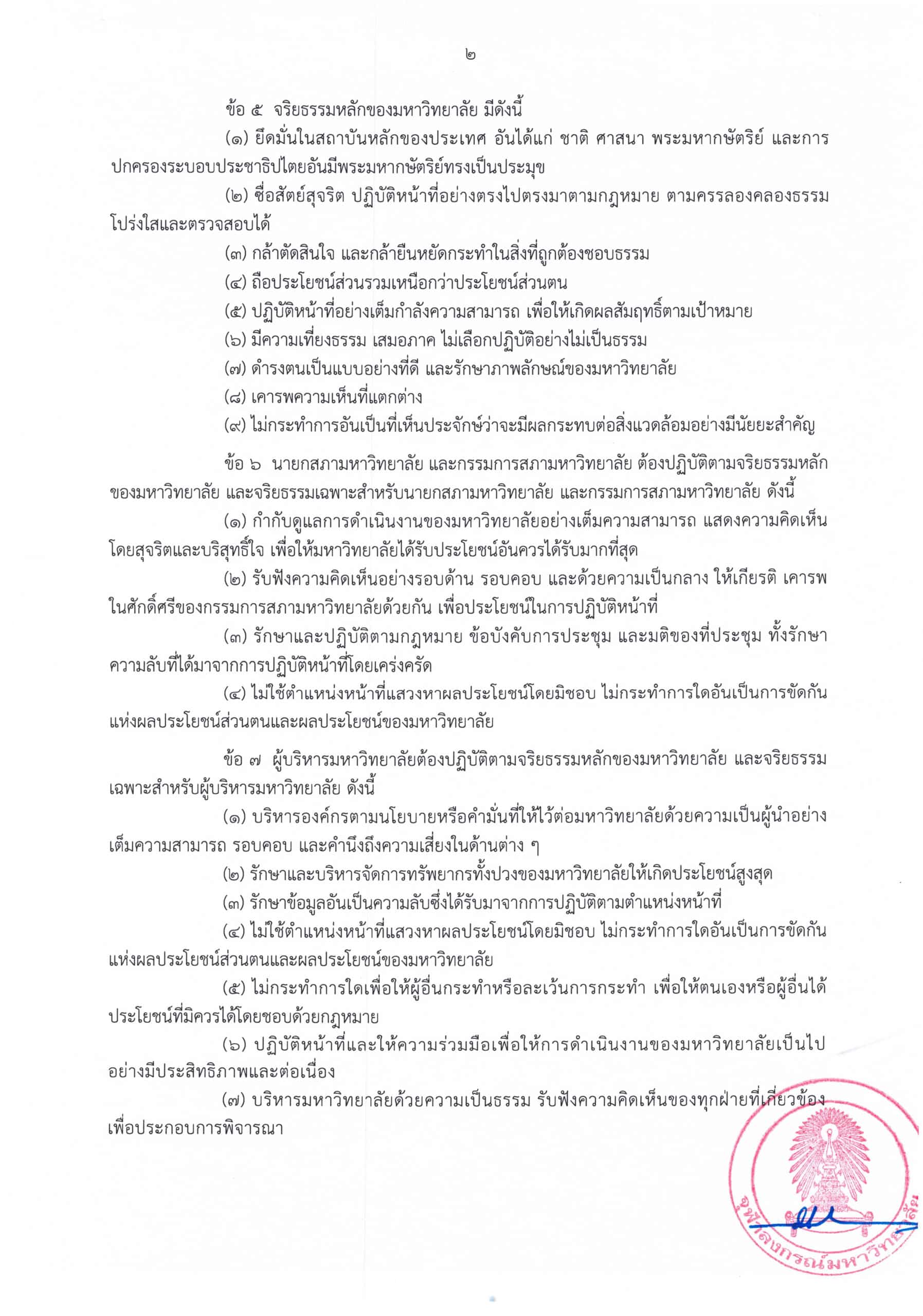 ซึ่งข้อบังคับใหม่นี้จะครอบคลุมทั้งการกำกับดูแลตั้งแต่นายกสภามหาวิทยาลัยและกรรมการสภามหาวิทยาลัย ซึ่งต้องแสดงความคิดเห็นโดยสุจริตและเป็นกลาง รวมถึงการรักษาความลับและการปฏิบัติตามกฎหมายของผู้บริหาร