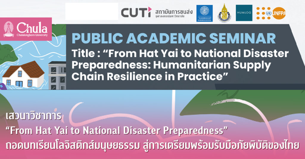 เสวนาวิชาการ “From Hat Yai to National Disaster Preparedness” ถอดบทเรียนโลจิสติกส์มนุษยธรรม สู่การเตรียมพร้อมรับมือภัยพิบัติของไทย