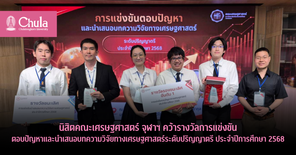 นิสิตคณะเศรษฐศาสตร์ จุฬาฯ คว้ารางวัลการแข่งขันตอบปัญหาและนำเสนอบทความวิจัยทางเศรษฐศาสตร์ระดับปริญญาตรี ประจำปีการศึกษา 2568