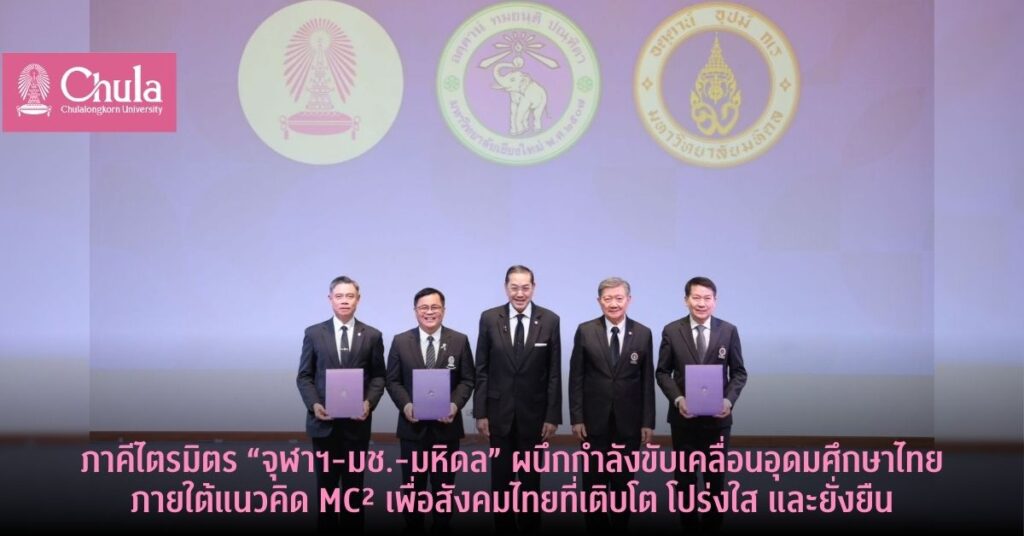 ภาคีไตรมิตร “จุฬาฯ-มช.-มหิดล” ผนึกกำลังขับเคลื่อนอุดมศึกษาไทยภายใต้แนวคิด MC² เพื่อสังคมไทยที่เติบโต โปร่งใส และยั่งยืน