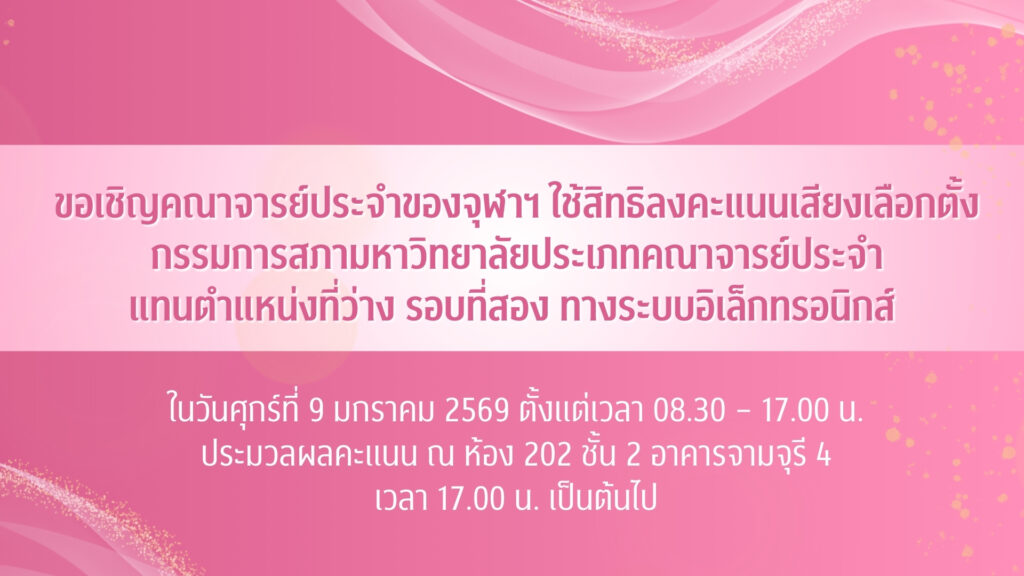 เชิญชวนคณาจารย์ประจำใช้สิทธิลงคะแนนเสียงเลือกตั้งกรรมการสภามหาวิทยาลัยประเภทคณาจารย์ประจำ “แทนตำแหน่งที่ว่าง” ทางระบบอิเล็กทรอนิกส์ 9 มกราคม 2569