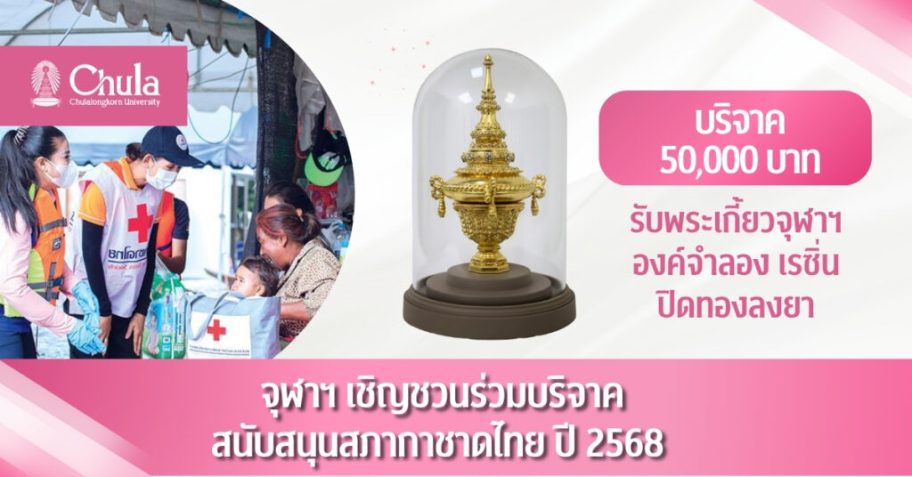 ไม่ต้องรอลุ้นรับบุญเต็ม ๆ จุฬาฯ กาชาด 2568 เชิญร่วมบริจาคสนับสนุนสภากาชาดไทย บริจาค 50,000 บาท รับพระเกี้ยวจำลอง ลดหย่อนภาษี 2 เท่า