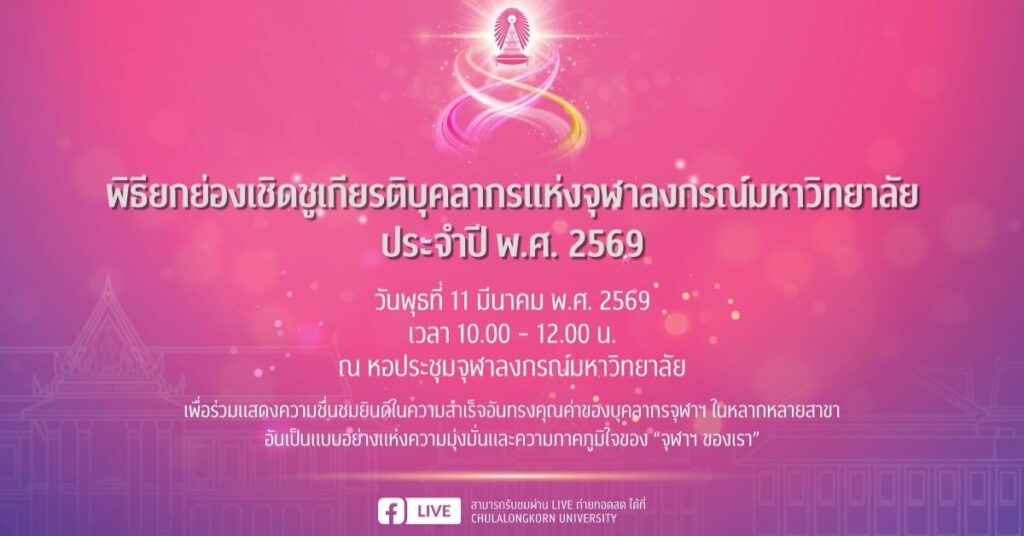 จุฬาฯ เชิญร่วมชื่นชมยินดีในพิธียกย่องเชิดชูเกียรติบุคลากรแห่งจุฬาฯ ปี 2569