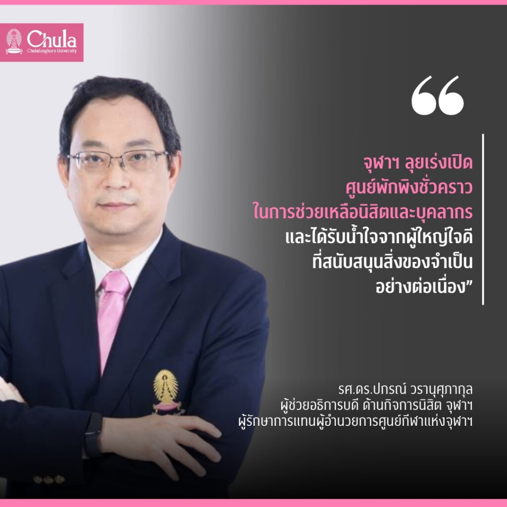 รศ.ดร.ปกรณ์ กล่าวว่า “ศูนย์กีฬาจุฬาฯ” เป็นพื้นที่ที่มีความพร้อมอยู่แล้ว ทั้งห้องน้ำ ห้องอาบน้ำ พื้นที่สำหรับการนอนพัก ตลอดจนการจัดเตรียมอาหารและสิ่งของจำเป็นต่าง ๆ โดยช่วงแรกมีการใช้ห้องประชุมติดแอร์รองรับผู้พักประมาณ 50-60 คน แต่เมื่อมีจำนวนผู้เข้าพักเพิ่มขึ้น ก็มีการขยายพื้นที่ไปยังสนามแบดมินตัน ที่ชั้น 1 CU Sports Complex ซึ่งสามารถรองรับได้เกือบ 200 คน โดยผู้ที่เข้าพักพิงมีทั้งนิสิตที่ไม่สามารถเข้าหอพักหรือคอนโดมิเนียมได้ บุคลากรของมหาวิทยาลัยที่ประสบปัญหาในการเดินทางกลับบ้าน โดยเฉพาะในช่วงเวลาที่การจราจรติดขัดอย่างหนัก รวมถึงครอบครัวของนิสิตต่างชาติ ที่เดินทางมาจากต่างประเทศ ซึ่งศูนย์พักพิงแห่งนี้ให้บริการจนถึงวันอาทิตย์ที่ 30 มีนาคมที่ผ่านมา