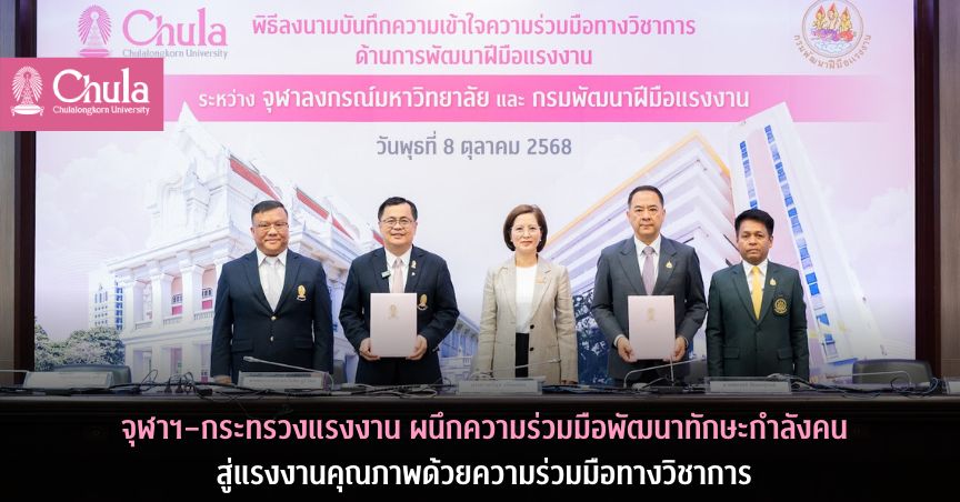 จุฬาฯ–กระทรวงแรงงาน ผนึกความร่วมมือพัฒนาทักษะกำลังคน สู่แรงงานคุณภาพด้วยความร่วมมือทางวิชาการ