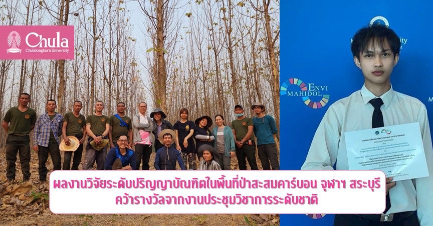 ศูนย์เครือข่ายการเรียนรู้เพื่อภูมิภาค ร่วมกับภาควิชาชีววิทยา คณะวิทยาศาสตร์ จุฬาลงกรณ์มหาวิทยาลัย เผยแพร่งานวิจัยเกี่ยวกับการเปรียบเทียบปริมาณคาร์บอนสะสมจากวิธีการศึกษาแบบดั้งเดิม (วางแปลงและเก็บข้อมูลต้นไม้ในพื้นที่ป่าภาคพื้นดิน) กับวิธีการใช้อากาศยานไร้คนขับ (Unmanned Aerial Vehicle: UAV) บริเวณพื้นที่ป่าสะสมคาร์บอน จุฬาลงกรณ์มหาวิทยาลัย สระบุรี ในงานประชุมวิชาการระดับชาติ “การพัฒนาอย่างยั่งยืนครั้งที่ 1” ของคณะสิ่งแวดล้อมและทรัพยากรศาสตร์ มหาวิทยาลัยมหิดล และได้รับการคัดเลือกให้เป็นการบรรยาย 1 ใน 9 ผลงานที่ได้รับรางวัล Outstanding Paper Awards