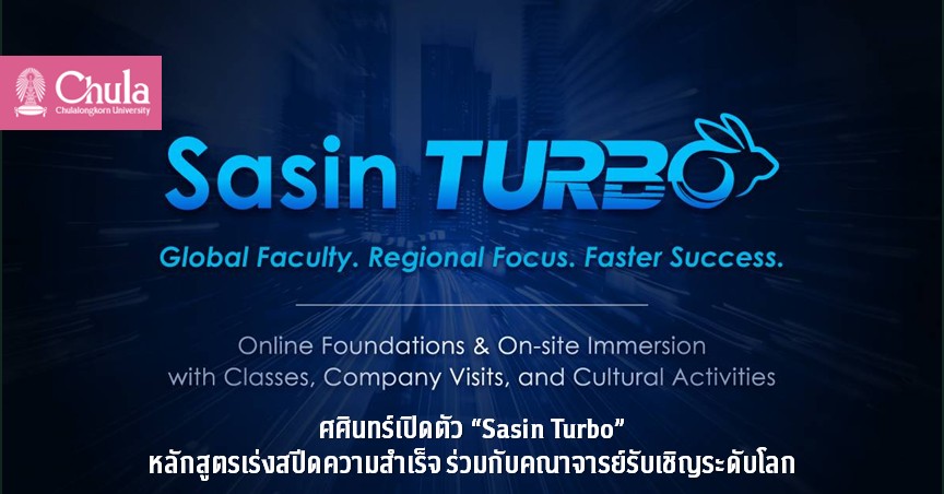 สถาบันบัณฑิตบริหารธุรกิจ ศศินทร์ แห่งจุฬาลงกรณ์มหาวิทยาลัย (Sasin School of Management) เปิดตัว “Sasin Turbo” หลักสูตรเข้มข้นที่ออกแบบและสอนโดยคณาจารย์ชั้นนำจากสถาบันการศึกษาด้านการจัดการระดับโลก ร่วมกับคณาจารย์ของศศินทร์ หลักสูตรนี้ผสมผสานมุมมองกลยุทธ์ระดับสากลเข้ากับบริบทเชิงลึกของภูมิภาค เพื่อเตรียมผู้นำรุ่นใหม่ให้พร้อมเผชิญความท้าทายสำคัญในเอเชียตะวันออกเฉียงใต้ พร้อมต่อยอดความรู้และเพิ่มโอกาสในการประสบความสำเร็จในอาชีพการงาน