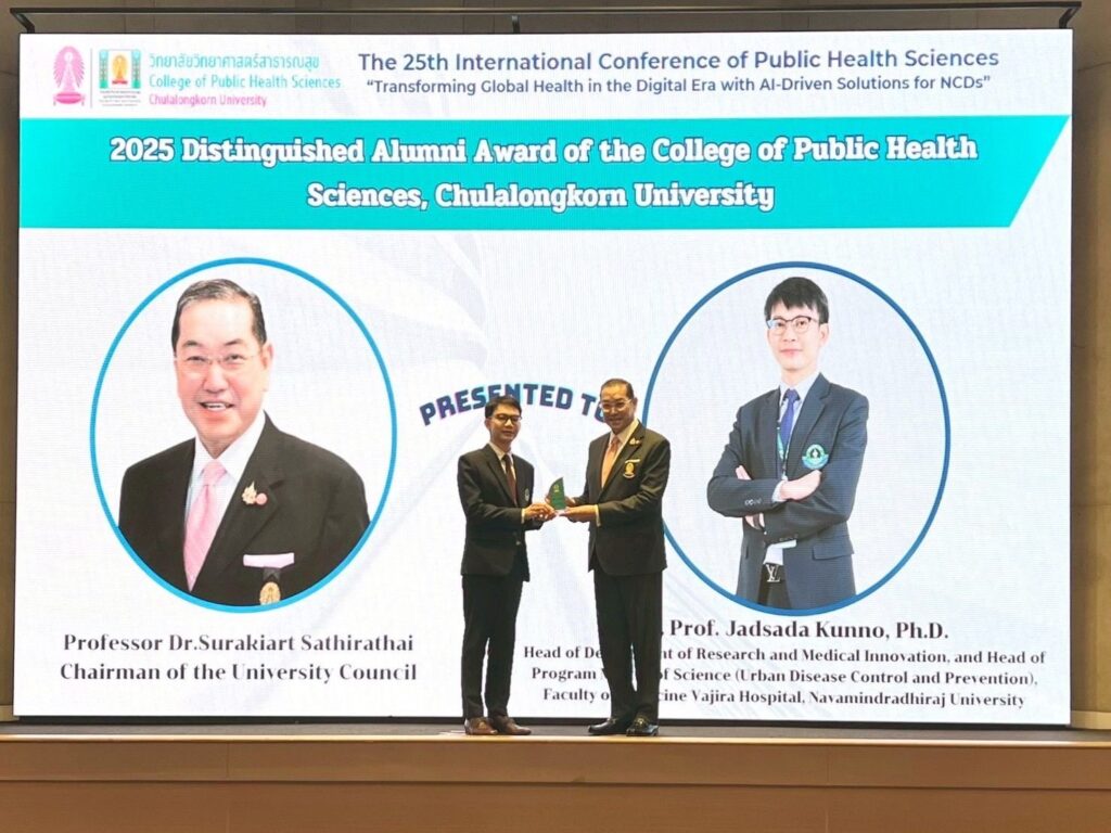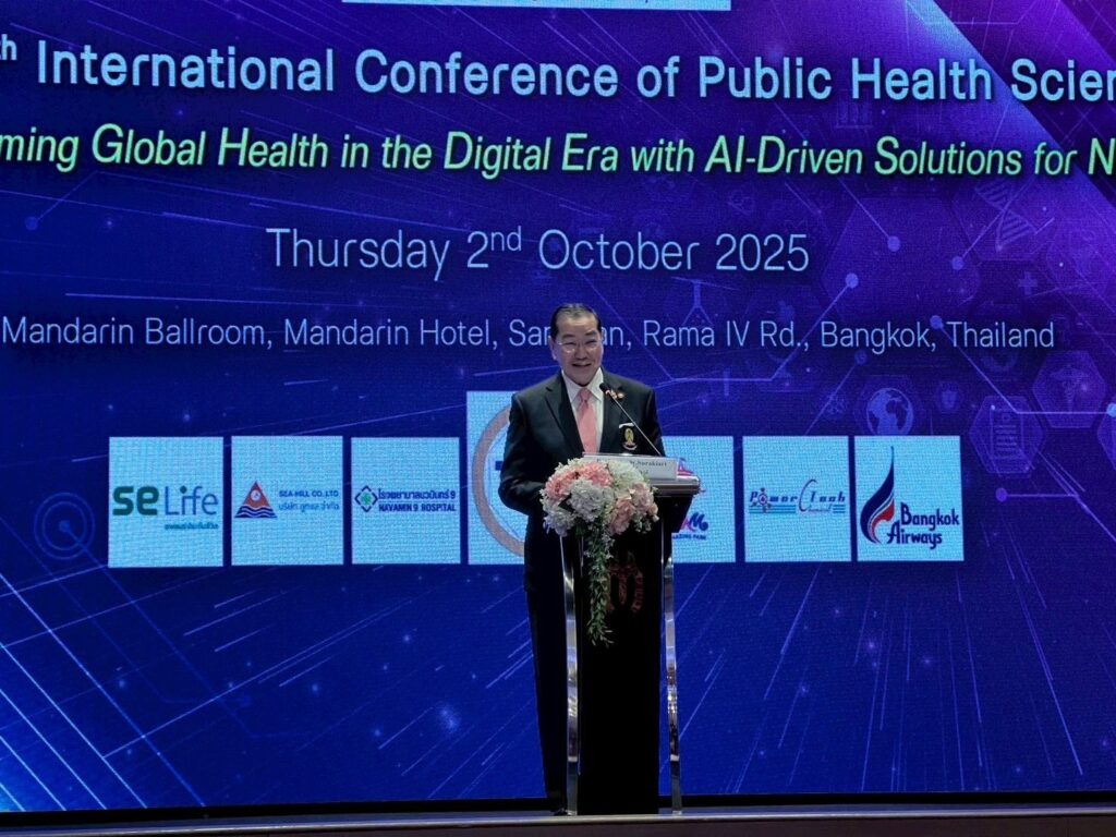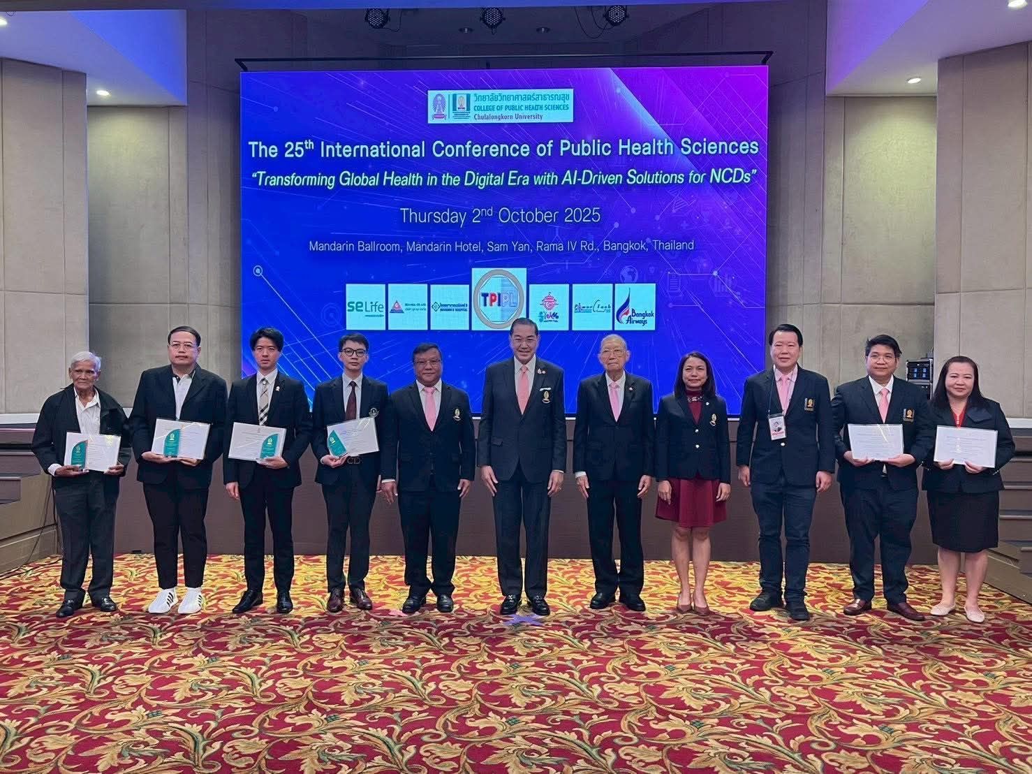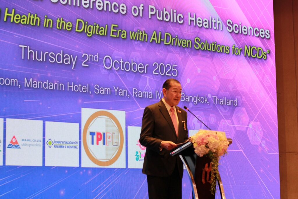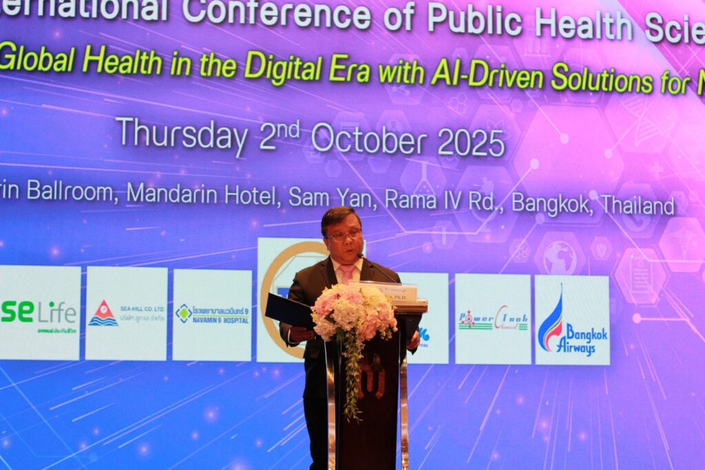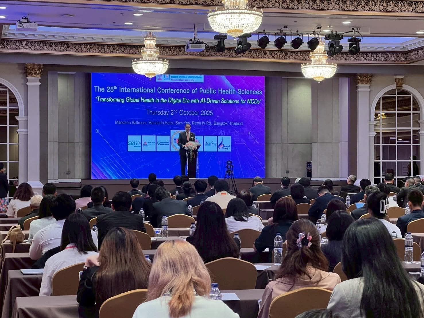 วิทยาลัยวิทยาศาสตร์สาธารณสุข จุฬาลงกรณ์มหาวิทยาลัยจัดการประชุมวิชาการนานาชาติสาธารณสุข ครั้งที่ 25 “Transforming Global Health in the Digital Era with AI-Driven Solutions for NCDs” เมื่อวันที่ 2 ตุลาคม 2568 ณ ห้องแมนดาริน บอลรูม โรงแรมแมนดาริน โดยได้รับเกียรติจาก ศ.(พิเศษ) ดร.สุรเกียรติ์ เสถียรไทย นายกสภาจุฬาลงกรณ์มหาวิทยาลัย เป็นประธานกล่าวเปิดการประชุม รศ.ดร.ศิริเดช สุชีวะ รองอธิการบดีจุฬาฯ กล่าวต้อนรับผู้เข้าร่วมประชุม และ ศ.ดร.จิตรลดา อารีย์สันติชัย คณบดีวิทยาลัยวิทยาศาสตร์สาธารณสุข จุฬาฯ กล่าวรายงานวัตถุประสงค์การจัดงานมีผู้เข้าร่วมการประชุมวิชาการครั้งนี้กว่า 200 คน ซึ่งกว่าร้อยละ 60 เป็นผู้เข้าร่วมจากต่างประเทศ สะท้อนถึงความเป็นเวทีวิชาการระดับนานาชาติอย่างแท้จริง