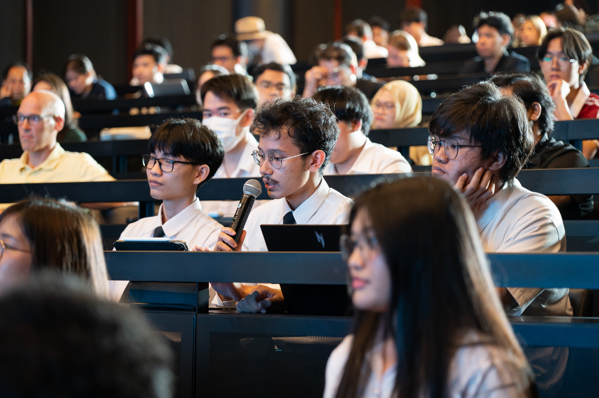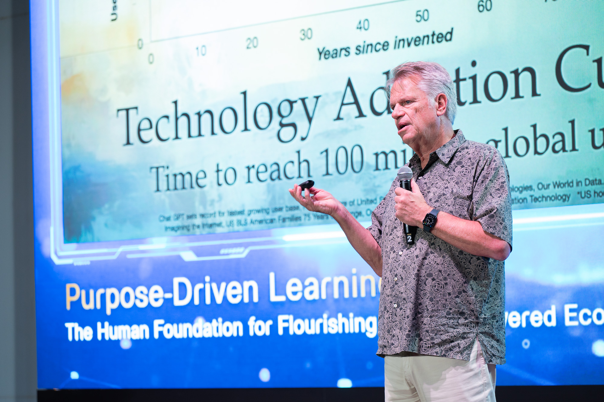 การบรรยายพิเศษครั้งนี้ Dr.Victor Strecher ได้ถ่ายทอดความรู้เกี่ยวกับการเรียนรู้ที่ขับเคลื่อนด้วยเป้าหมายในฐานะรากฐานสำคัญของการสร้างความยืดหยุ่น ความเป็นอยู่ที่ดี และสมรรถนะสูงในเศรษฐกิจยุค AI พร้อมเผยถึงวิธีการเชื่อมโยง “ความหมายในชีวิต” เข้ากับ “การพัฒนาทักษะ” เพื่อปลดล็อกแรงบันดาลใจและนวัตกรรมทั้งในระดับบุคคล องค์กร และสังคม ในยุคแห่งการเปลี่ยนแปลงที่รวดเร็ว ทั้งนี้การบรรยายดังกล่าวมีคณาจารย์ บุคลากร และนิสิตเข้าฟังจำนวนมาก