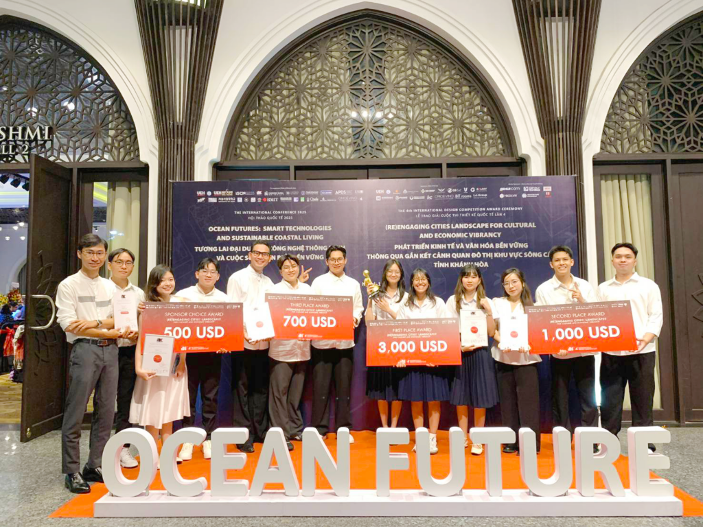 นิสิตภาควิชาภูมิสถาปัตยกรรม คณะสถาปัตยกรรมศาสตร์ จุฬาฯ คว้ารางวัลชนะเลิศการประกวด The International Design Award: (Re)Engaging Cities’ Landscape for Cultural and Economic Vibrancy จัดโดย University of Economics Ho Chi Minh City (UEH) ร่วมกับ Khanh Hoa Provincial People’s Committee เมื่อวันที่ 1 ตุลาคม 2568 ณ เมืองญาจางเหนือ ประเทศเวียดนาม