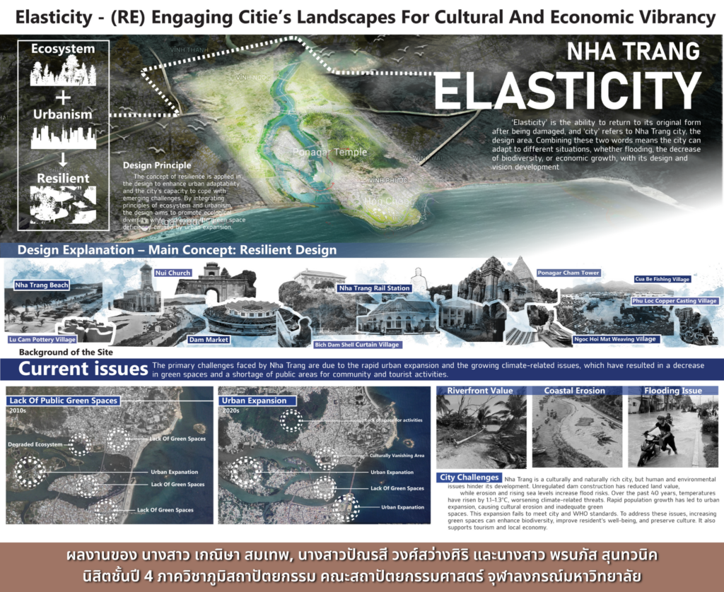 ผลงานของนิสิตคณะสถาปัตยกรรมศาสตร์ จุฬาฯ ที่ได้รับรางวัลชนะเลิศสะท้อนให้เห็นถึงศักยภาพของภูมิสถาปัตยกรรมและมรดกทางวัฒนธรรม ควบคู่กับการพัฒนาเมืองที่สามารถรับมือกับการเปลี่ยนแปลงสภาพภูมิอากาศได้อย่างยั่งยืน อีกทั้งยังเป็นแนวทางสำคัญต่อการจัดทำแผนแม่บทการพัฒนาเมืองญาจาง พ.ศ. 2583 (Nha Trang’s General Plan to 2040) เพื่อส่งเสริมการพัฒนาอย่างยั่งยืนในด้านวัฒนธรรม เศรษฐกิจ และสิ่งแวดล้อมของภูมิภาค