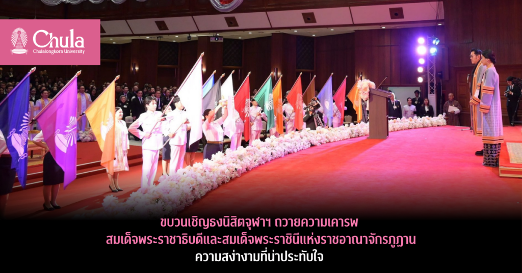 ขบวนเชิญธงนิสิตจุฬาฯ ถวายความเคารพสมเด็จพระราชาธิบดีและสมเด็จพระราชินีแห่งราชอาณาจักรภูฏาน ความสง่างามที่น่าประทับใจ