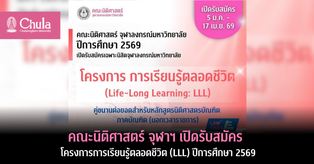 คณะนิติศาสตร์ จุฬาฯ เปิดรับสมัคร โครงการการเรียนรู้ตลอดชีวิต (LLL) ปีการศึกษา 2569