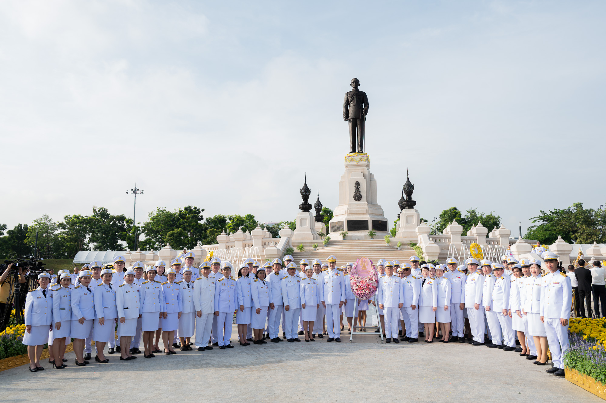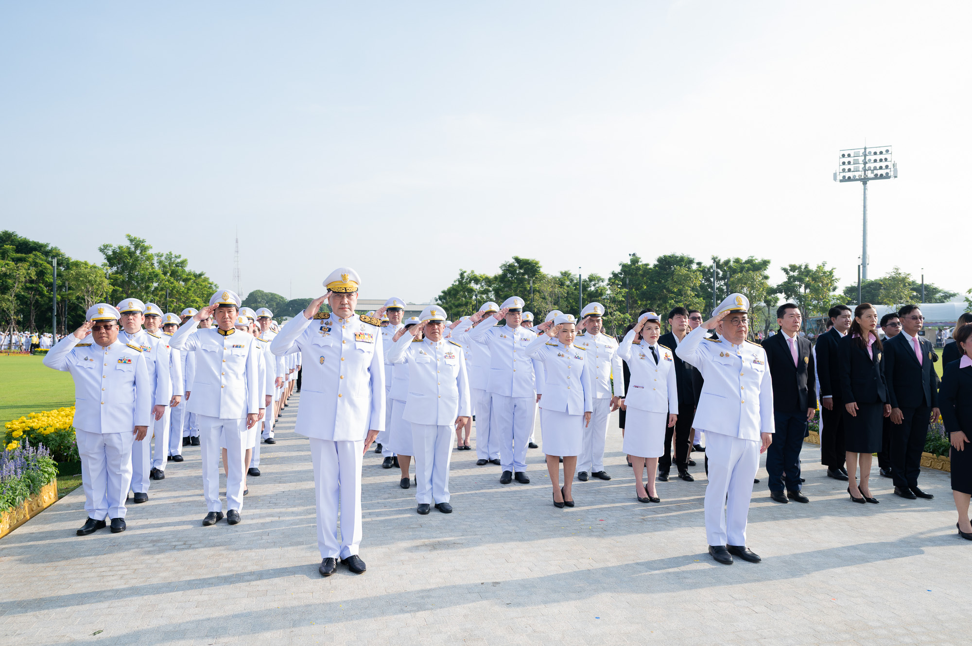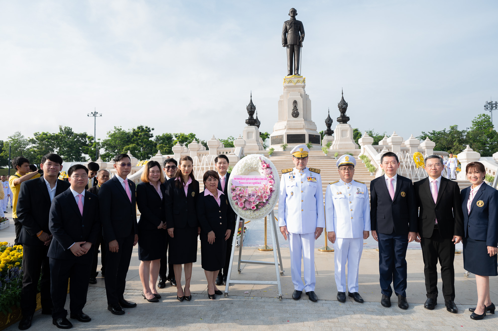 ศ. (พิเศษ) ดร.สุรเกียรติ์ เสถียรไทย นายกสภาจุฬาลงกรณ์มหาวิทยาลัย ศ.ดร.วิเลิศ ภูริวัชร อธิการบดีจุฬาฯ พร้อมด้วยกรรมการสภามหาวิทยาลัย ผู้บริหารจุฬาฯ คณาจารย์ บุคลากร นิสิตจุฬาฯ และผู้แทนจากสมาคมนิสิตเก่าจุฬาฯ ร่วมพิธีวางพวงมาลาถวายสักการะและถวายบังคมพระบรมราชานุสาวรีย์พระบาทสมเด็จพระบรมชนกาธิเบศร มหาภูมิพลอดุลยเดชมหาราช บรมนาถบพิตร เนื่องใน “วันนวมินทรมหาราช” เมื่อวันจันทร์ที่ 13 ตุลาคม 2568 เวลา 07.30 น. ณ อุทยานเฉลิมพระเกียรติพระบาทสมเด็จพระบรมชนกาธิเบศร มหาภูมิพลอดุลยเดชมหาราช บรมนาถบพิตร