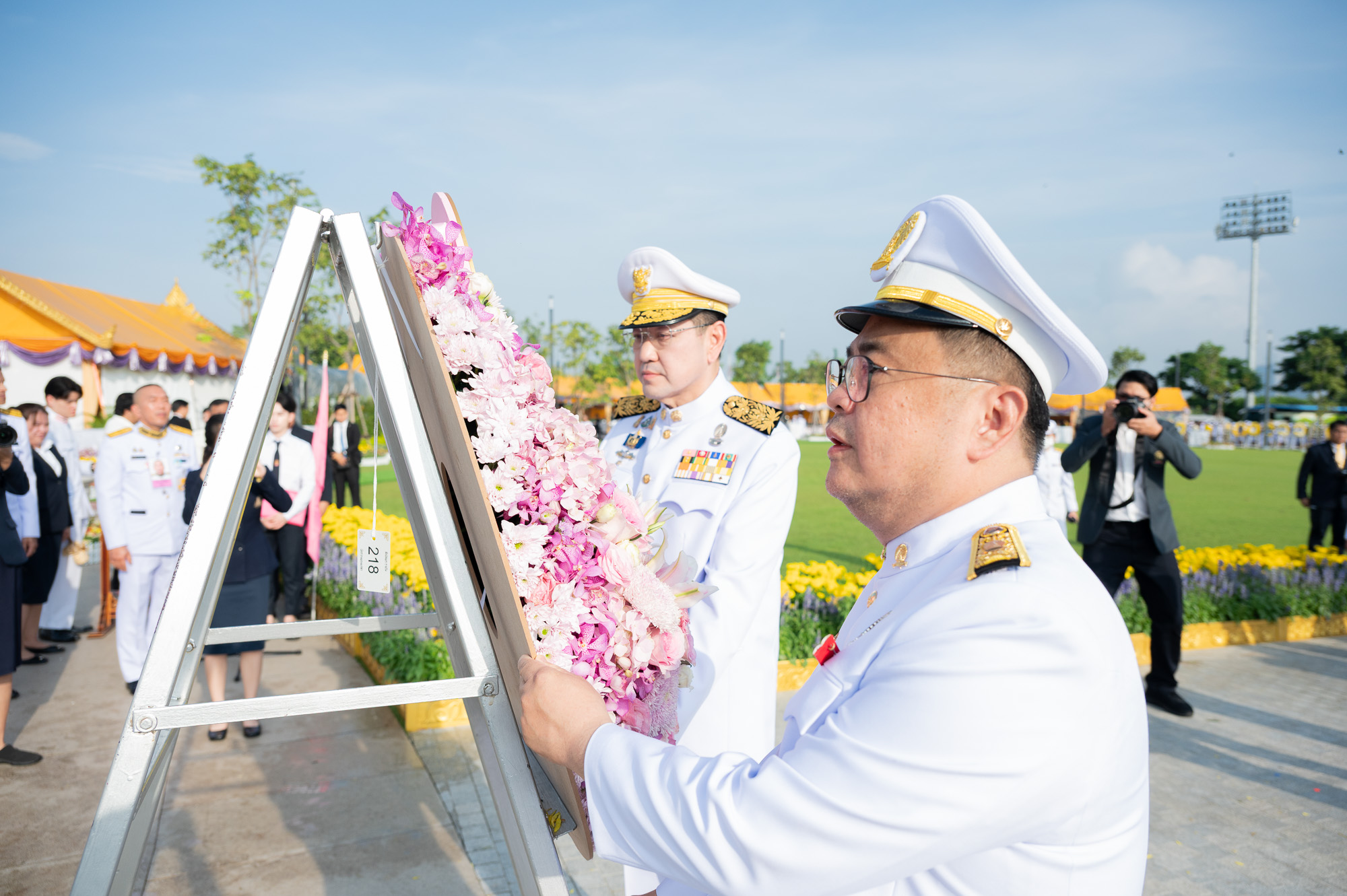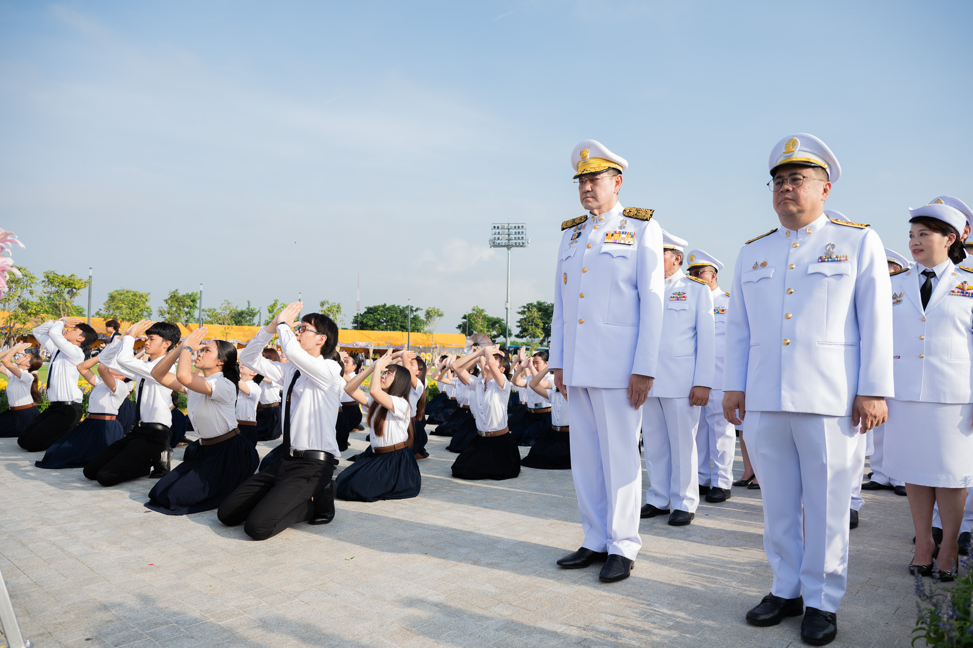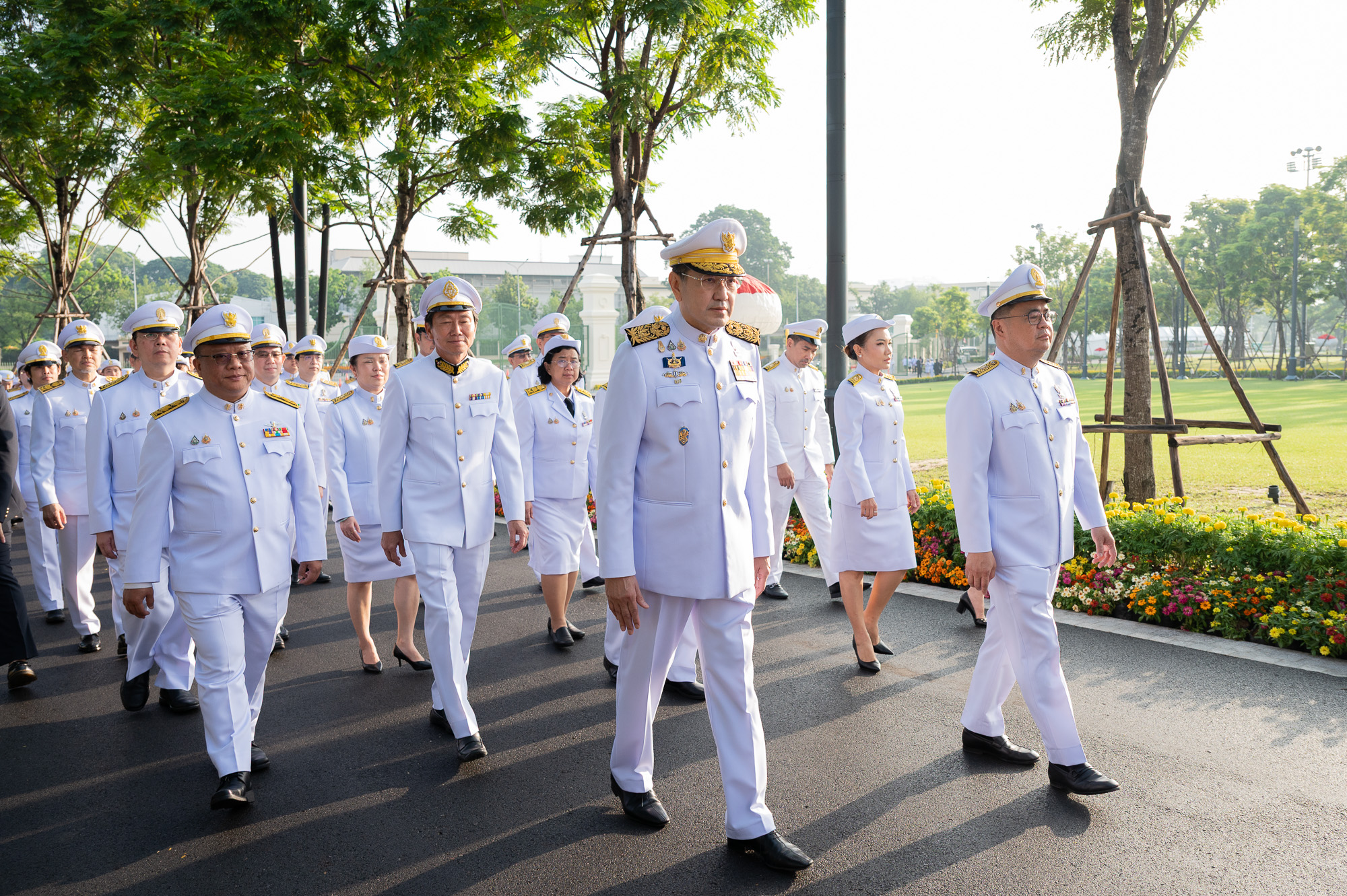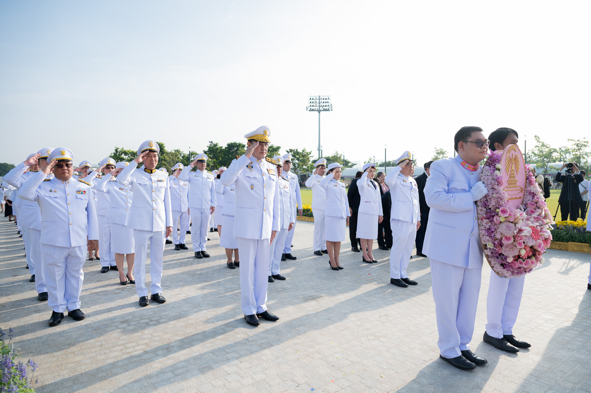ศ. (พิเศษ) ดร.สุรเกียรติ์ เสถียรไทย นายกสภาจุฬาลงกรณ์มหาวิทยาลัย ศ.ดร.วิเลิศ ภูริวัชร อธิการบดีจุฬาฯ พร้อมด้วยกรรมการสภามหาวิทยาลัย ผู้บริหารจุฬาฯ คณาจารย์ บุคลากร นิสิตจุฬาฯ และผู้แทนจากสมาคมนิสิตเก่าจุฬาฯ ร่วมพิธีวางพวงมาลาถวายสักการะและถวายบังคมพระบรมราชานุสาวรีย์พระบาทสมเด็จพระบรมชนกาธิเบศร มหาภูมิพลอดุลยเดชมหาราช บรมนาถบพิตร เนื่องใน “วันนวมินทรมหาราช” เมื่อวันจันทร์ที่ 13 ตุลาคม 2568 เวลา 07.30 น. ณ อุทยานเฉลิมพระเกียรติพระบาทสมเด็จพระบรมชนกาธิเบศร มหาภูมิพลอดุลยเดชมหาราช บรมนาถบพิตร