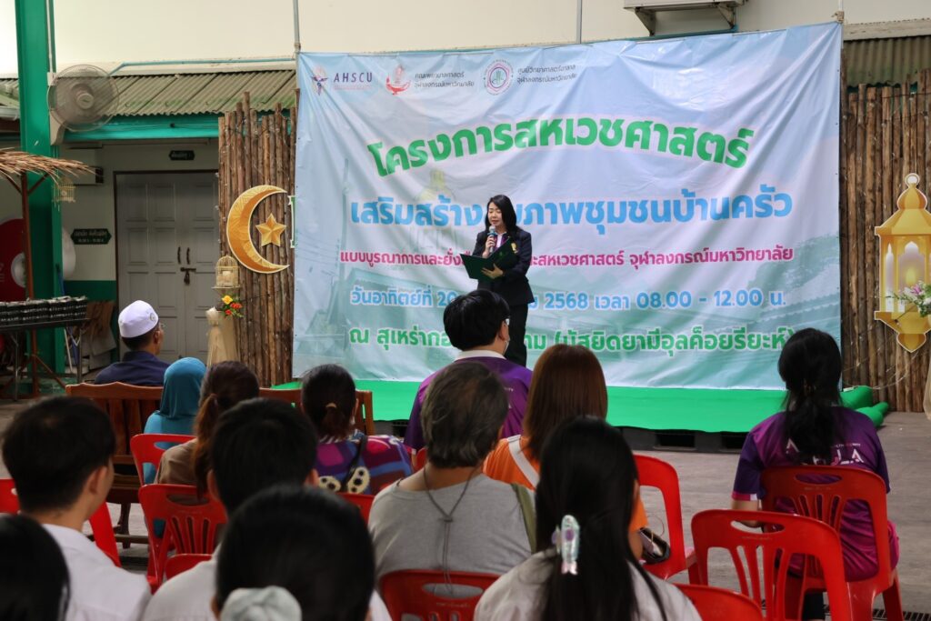 รศ.ดร.อนงค์ ตันติสุวัฒน์ รองคณบดีด้านวิชาการและการศึกษา เทคโนโลยีสารสนเทศ ประชาสัมพันธ์และภาพลักษณ์องค์กร คณะสหเวชศาสตร์ จุฬาลงกรณ์มหาวิทยาลัย เปิดเผยถึง “โครงการสหเวชศาสตร์เสริมสร้างสุขภาพชุมชนบ้านครัวแบบบูรณาการและยั่งยืน” ซึ่งคณะสหเวชศาสตร์ จุฬาฯ จัดขึ้นเมื่อเร็ว ๆ นี้ว่า เป็นโครงการที่ตอบสนองพันธกิจของจุฬาลงกรณ์มหาวิทยาลัยในการร่วมดูแลสังคมให้เกิดความยั่งยืน ซึ่งที่ผ่านมาคณะสหเวชศาสตร์ จุฬาฯ ได้จัดกิจกรรมสหเวชศาสตร์เพื่อชุมชนในพื้นที่อื่น ๆ ต่อเนื่องเป็นประจำทุกปี ในปี 2568 ทางคณะได้วางแนวทางเข้าไปดูแลชุมชนในพื้นที่โดยรอบจุฬาฯ เพื่อให้สอดคล้องกับพันธกิจของคณะและมหาวิทยาลัยที่มุ่งมั่นในการดูแลพื้นที่ข้างเคียง จึงเป็นที่มาของโครงการนี้ซึ่งเป็นโครงการนำร่อง ณ ชุมชนบ้านครัวตะวันตก (มัสยิดยามีอุลค็อยรียะห์)