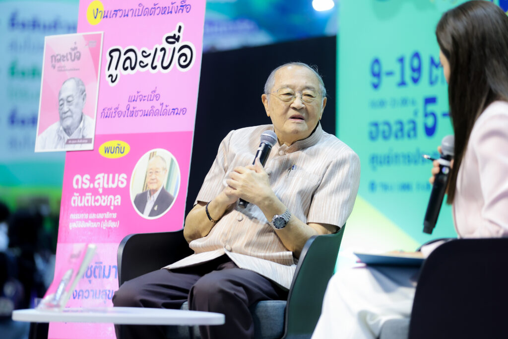 ศูนย์หนังสือจุฬาลงกรณ์มหาวิทยาลัยจัดเสวนาเปิดตัวหนังสือ “กูละเบื่อ : แม้จะเบื่อก็มีเรื่องให้ชวนคิดได้เสมอ” เพลิดเพลินกับชีวิตอีกด้านหนึ่งของ ดร.สุเมธ ตันติเวชกุล กรรมการและเลขาธิการมูลนิธิชัยพัฒนา ผู้เขียน ที่ย้ำว่าหนังสือเล่มนี้ “เอาฮา” แต่อารมณ์ขันของผู้เขียนกลับเต็มไปด้วยความหมายและสะท้อนให้เห็นมุมมองชีวิตที่ลึกซึ้ง รู้จักเปลี่ยนความเบื่อให้กลายเป็นความบันเทิงอย่างเปี่ยมเสน่ห์ ในงานมหกรรมหนังสือระดับชาติ ครั้งที่ 30 เมื่อวันที่ 14 ตุลาคม 2568 ณ ศูนย์การประชุมแห่งชาติสิริกิติ์ โดยมี รศ.ดร.ดนุพล หุ่นโสภณ ผู้ช่วยอธิการบดี จุฬาฯ และกรรมการบริหารศูนย์หนังสือจุฬาฯ กล่าวต้อนรับ คุณชุติมา พึ่งความสุข พิธีกร / ผู้ประกาศข่าวชื่อดัง ร่วมพูดคุยบนเวทีกิจกรรม