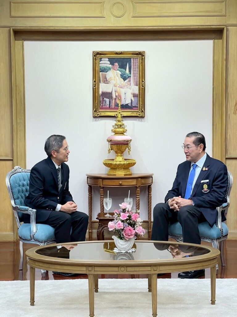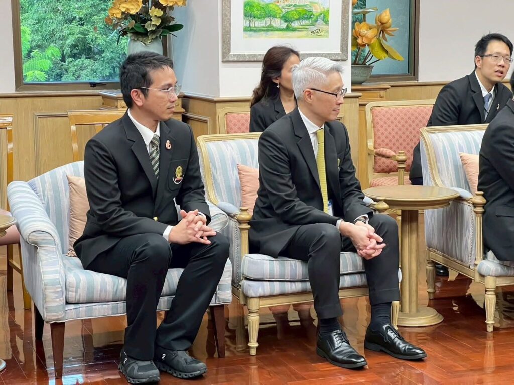เมื่อวันพุธที่ 15 ตุลาคม 2568 ณ ห้องรับรอง ชั้น 2 อาคารจามจุรี 4 รศ.ดร.นพ.จิรุตม์ ศรีรัตนบัลล์ คณบดีคณะแพทยศาสตร์ จุฬาลงกรณ์มหาวิทยาลัย เข้าพบ ศ. (พิเศษ) ดร.สุรเกียรติ์ เสถียรไทย นายกสภาจุฬาลงกรณ์มหาวิทยาลัย เนื่องในโอกาสเข้ารับตำแหน่งคณบดีคณะแพทยศาสตร์ จุฬาฯ คนใหม่