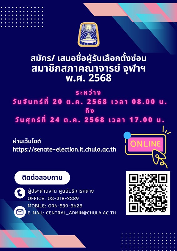 ติดตามรายละเอียดเพิ่มเติมได้ที่ https://senate-election.it.chula.ac.th/