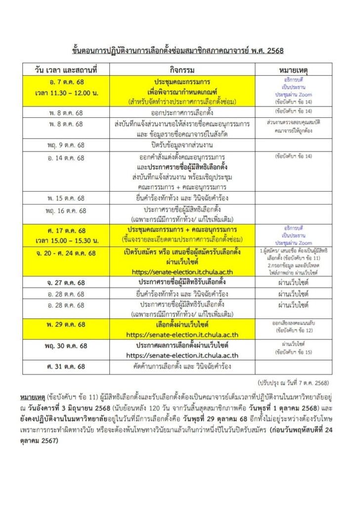 กำหนดการรับสมัครหรือเสนอชื่อผู้สมัครรับเลือกตั้งซ่อมสมาชิกสภาคณาจารย์ จุฬาฯ พ.ศ. 2568