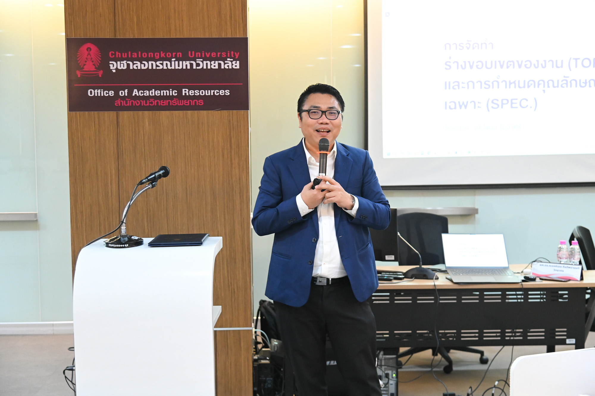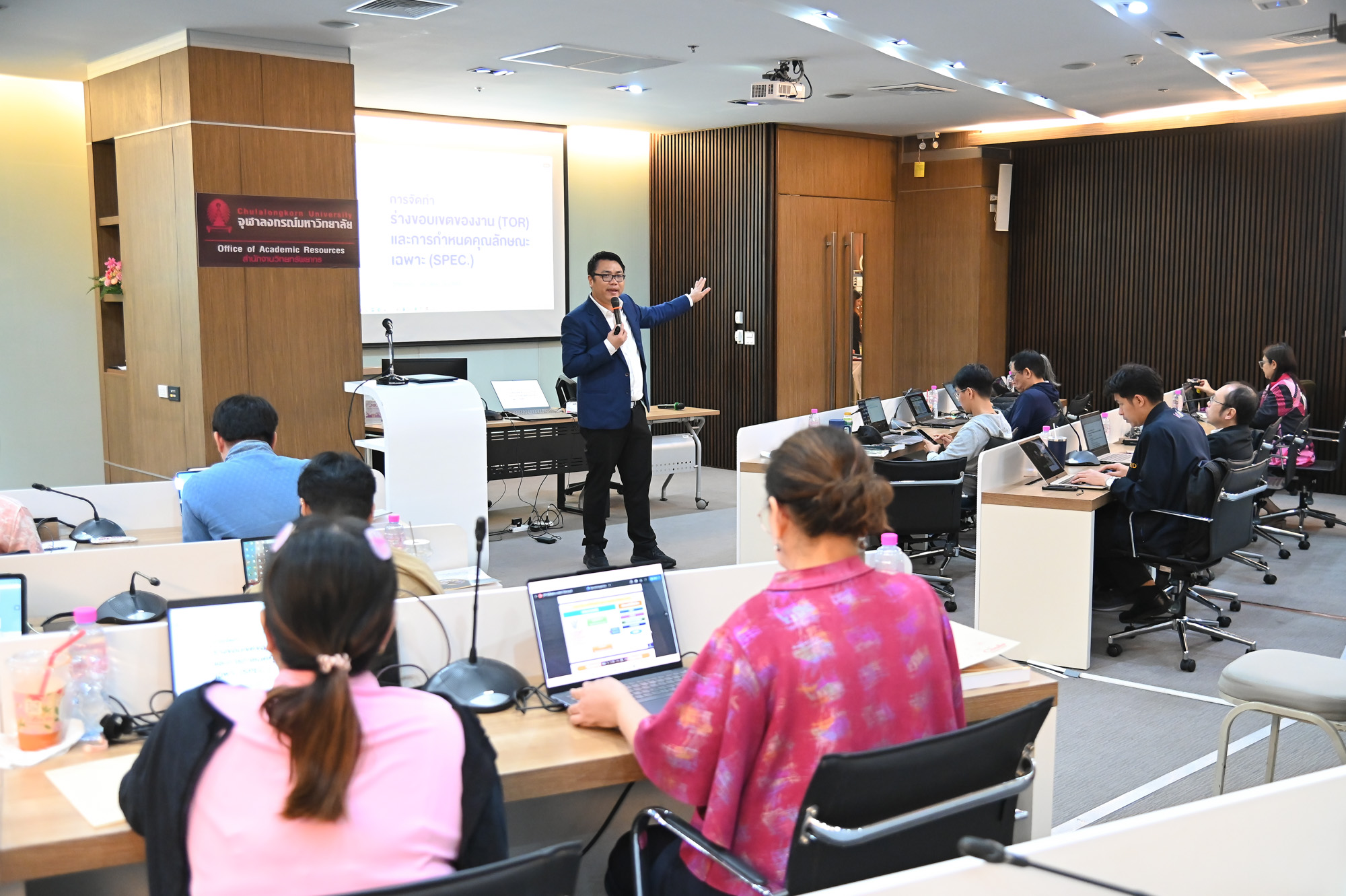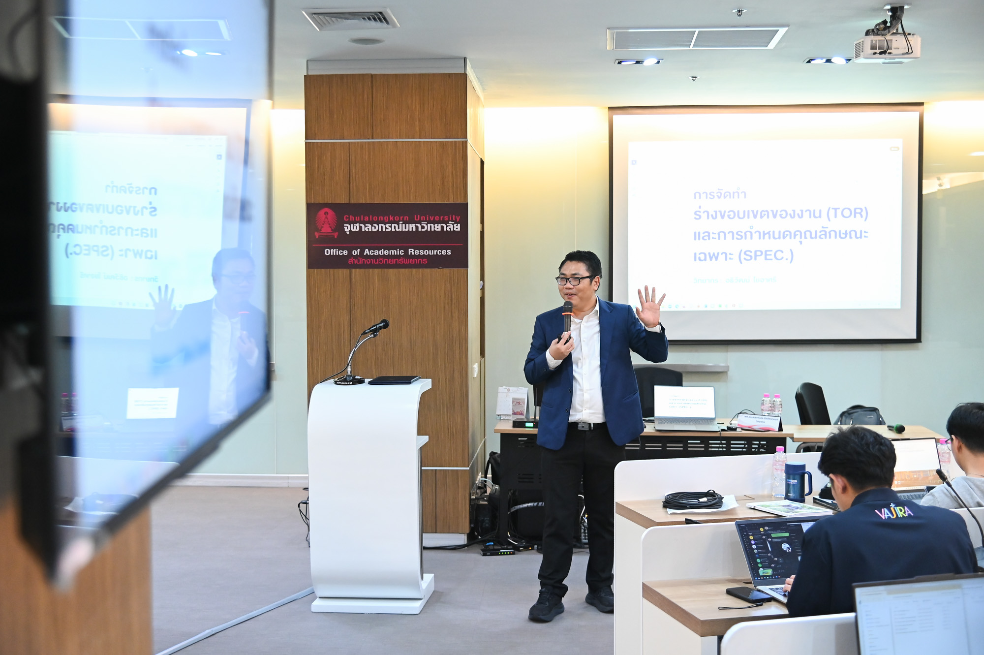 สำนักบริหารการเงิน การบัญชี และการพัสดุ จุฬาฯ ร่วมกับศูนย์บริการวิชาการแห่งจุฬาฯ จัดโครงการฝึกอบรมหลักสูตร “แนวทาง กระบวนการจัดซื้อจัดจ้าง ตามพระราชบัญญัติการจัดซื้อจัดจ้างและการบริหารพัสดุภาครัฐ พ.ศ.2560 “Smart TOR: เขียน TOR ให้แม่นและเร็วด้วย AI” รุ่นที่ 1 ระหว่างวันที่ 18 – 19 ตุลาคม 2568 ณ ห้องประชุมชั้น 3 อาคารมหาธีรราชานุสรณ์ สำนักงานวิทยทรัพยากร จุฬาฯ โดยมี รศ.ดร.ศิริเดช สุชีวะ รองอธิการบดี จุฬาฯ เป็นประธานในพิธีเปิดการฝึกอบรม เมื่อวันเสาร์ที่ 18 ตุลาคม 2568