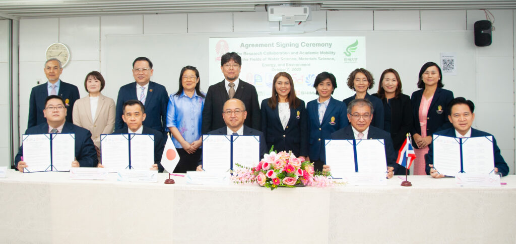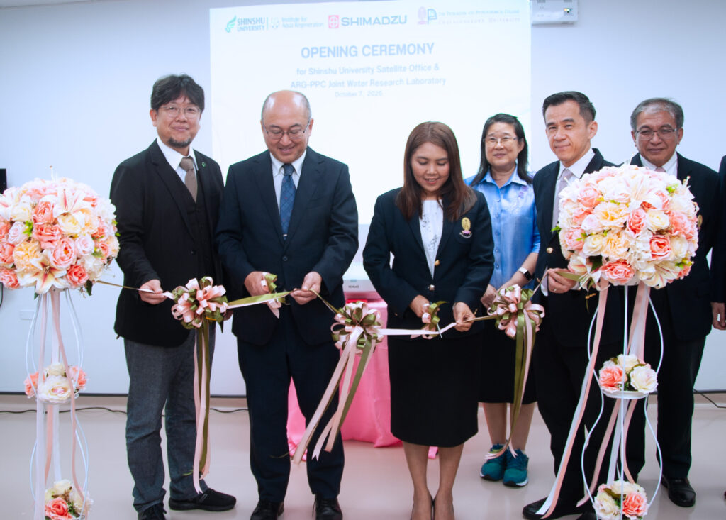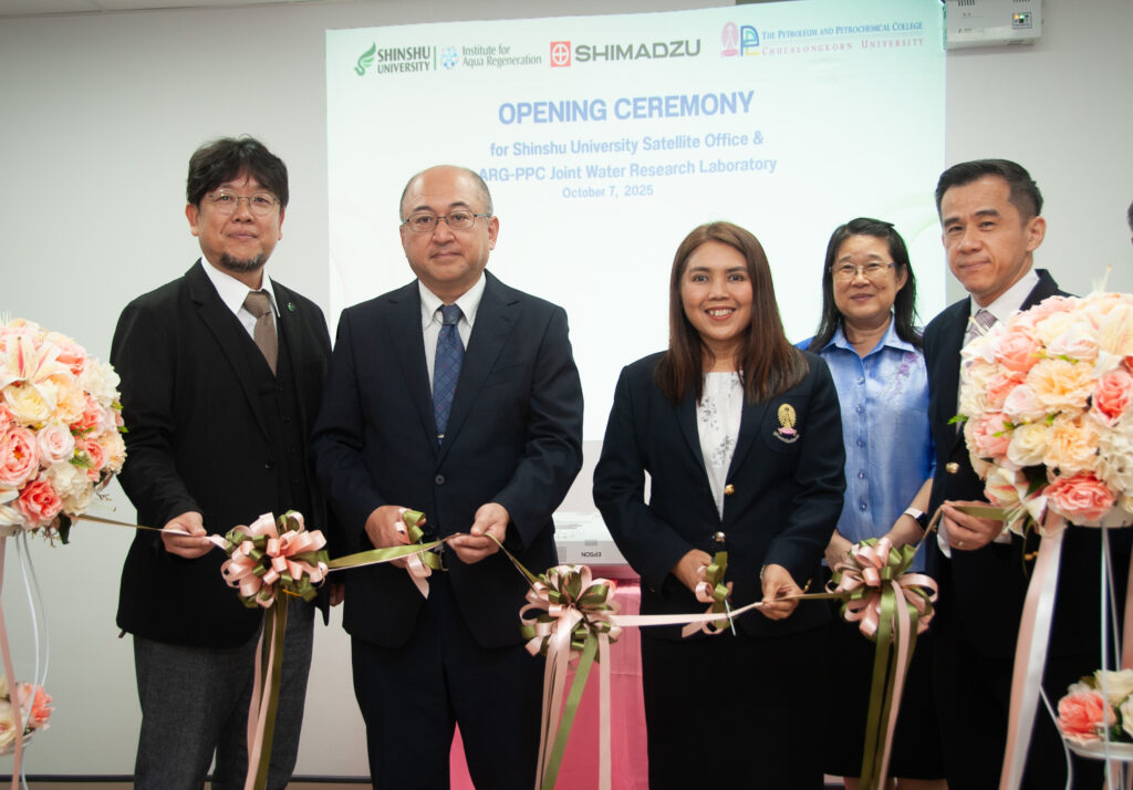 ผู้บริหารวิทยาลัยปิโตรเลียมและปิโตรเคมี จุฬาฯ คณะวิทยาศาสตร์ จุฬาฯ สถาบันวิจัยทรัพยากรทางน้ำ จุฬาฯ ศูนย์ความเป็นเลิศด้านการจัดการสารและของเสียอันตราย จุฬาฯ และมหาวิทยาลัยชินชู ประเทศญี่ปุ่น ร่วมลงนามบันทึกความเข้าใจ (MOU) ว่าด้วยความร่วมมือด้านการวิจัยและการแลกเปลี่ยนทางวิชาการ เมื่อวันที่ 7 ตุลาคม 2568 ณ ชั้น 3 วิทยาลัยปิโตรเลียมและปิโตรเคมี จุฬาฯ โดยมีเป้าหมายสำคัญในการส่งเสริมการแลกเปลี่ยนนักวิจัย การวิจัยร่วมด้านสิ่งแวดล้อม รวมถึงการพัฒนานวัตกรรมด้านการจัดการน้ำ พร้อมทั้งเปิดตัว Shinshu University Satellite Office และ “ARG-PPC Joint Water Research Laboratory” ณ ชั้น 8 วิทยาลัยปิโตรเลียมและปิโตรเคมี ซึ่งนับเป็นก้าวใหม่ที่ยิ่งใหญ่ในการสร้างเครือข่ายวิจัยระดับนานาชาติ