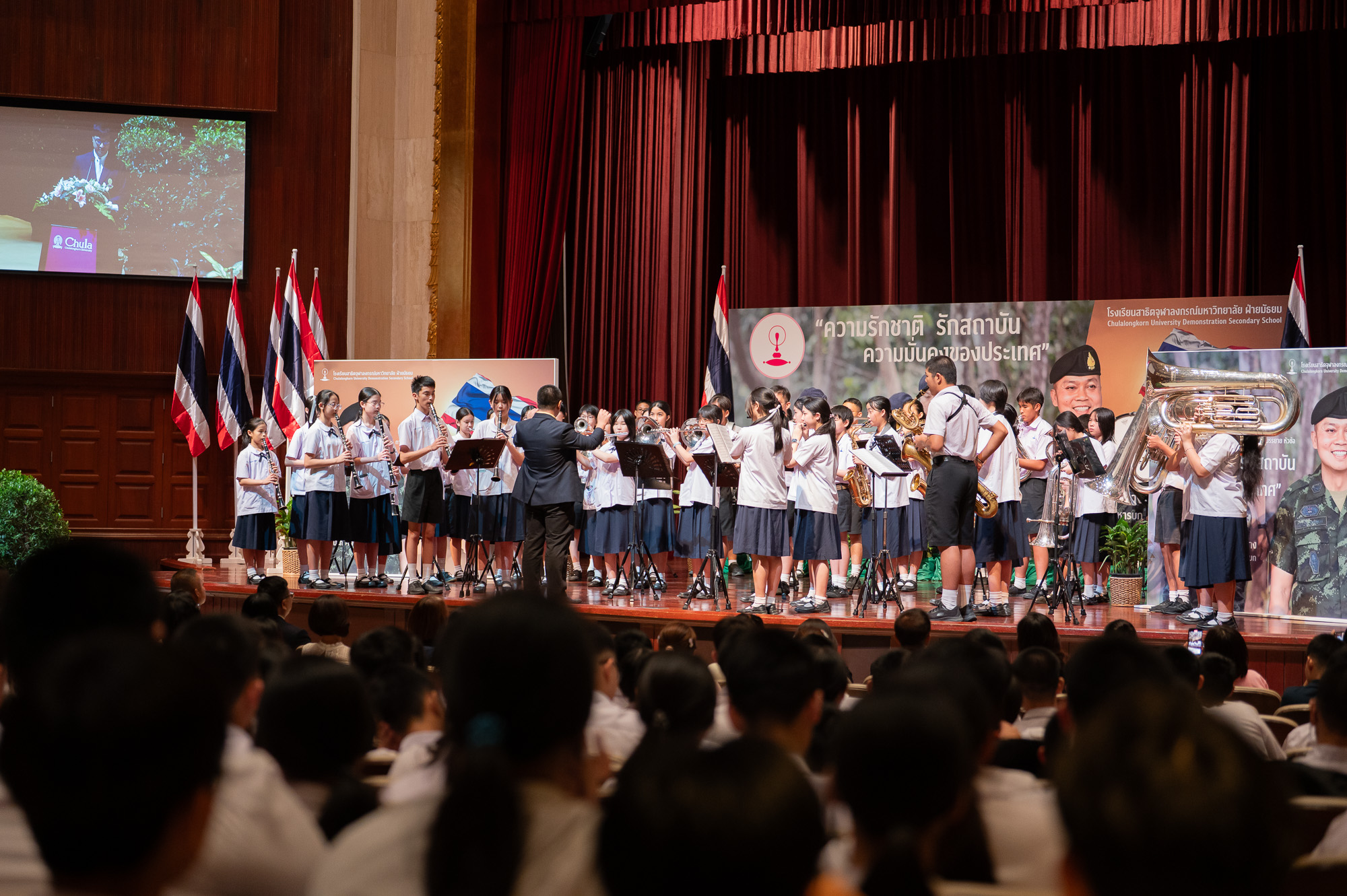 ในงานนี้ รศ.ดร.ศิริเดช สุชีวะ รองอธิการบดีจุฬาฯ และ รศ.ดร.ยศวีร์ สายฟ้า คณบดีคณะครุศาสตร์ จุฬาฯ ให้เกียรติมาร่วมฟังการบรรยายในครั้งนี้ ร่วมกับนักเรียนทุกระดับชั้น คณาจารย์ บุคลากรในโรงเรียน ด้วยบรรยากาศที่เป็นไปอย่างอบอุ่นและเปี่ยมด้วยสาระ นักเรียนได้เรียนรู้ถึงความสำคัญของสถาบันหลักของชาติ ความเสียสละของเหล่าทหารผู้พิทักษ์แผ่นดิน และตระหนักถึงความสำคัญในการทำหน้าที่ของตนเองให้ดีที่สุด และใช้ความรู้คู่คุณธรรมเป็นหลักในการดำเนินชีวิต รวมถึงการดูแลและธำรงรักษาแผ่นดินไทยให้คงอยู่สืบไป