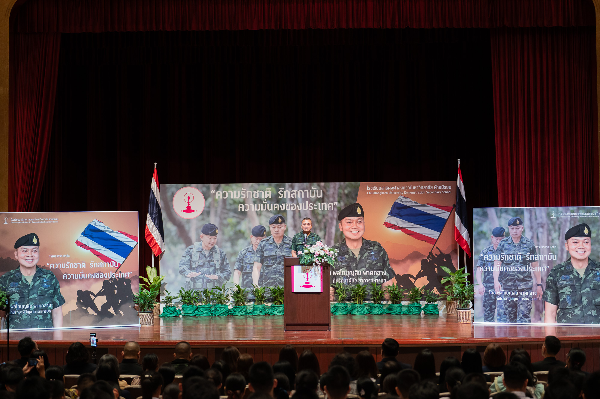 โรงเรียนสาธิตจุฬาลงกรณ์มหาวิทยาลัย ฝ่ายมัธยม จัดกิจกรรมบรรยายพิเศษในหัวข้อ “ความรักชาติ รักสถาบัน ความมั่นคงของประเทศ” โดยได้รับเกียรติจาก พล.ท.บุญสิน พาดกลาง ที่ปรึกษาผู้บัญชาการทหารบก เป็นวิทยากรกิตติมศักดิ์ เมื่อวันที่ 20 ตุลาคม 2568 ณ หอประชุมจุฬาฯ โดยมี รศ.ดร.ศิริเดช สุชีวะ รองอธิการบดีจุฬาฯ เป็นผู้กล่าวต้อนรับ