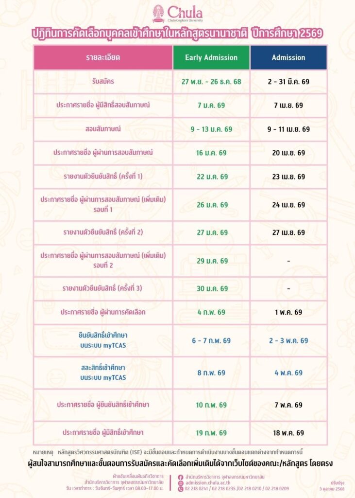 หรือติดตามรายละเอียดได้ที่ https://www.chula.ac.th/academics/admissions/undergraduate-admission/