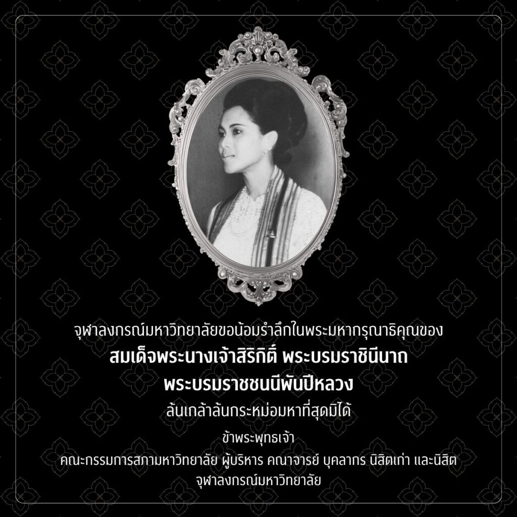จุฬาลงกรณ์มหาวิทยาลัยขอน้อมรำลึกในพระมหากรุณาธิคุณของสมเด็จพระนางเจ้าสิริกิติ์ พระบรมราชินีนาถ พระบรมราชชนนีพันปีหลวง