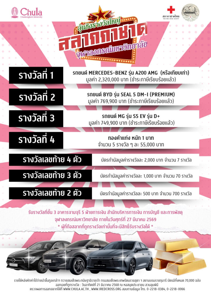 ตรวจผลการออกสลากได้ที่ www.chula.ac.th , www.iredcross.org