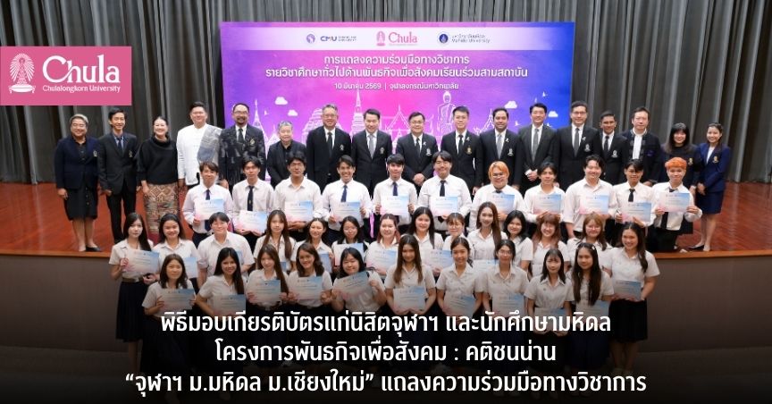 พิธีมอบเกียรติบัตรแก่นิสิตจุฬาฯ และนักศึกษามหิดลในโครงการพันธกิจเพื่อสังคม : คติชนน่าน “จุฬาฯ ม.มหิดล ม.เชียงใหม่” แถลงความร่วมมือทางวิชาการ