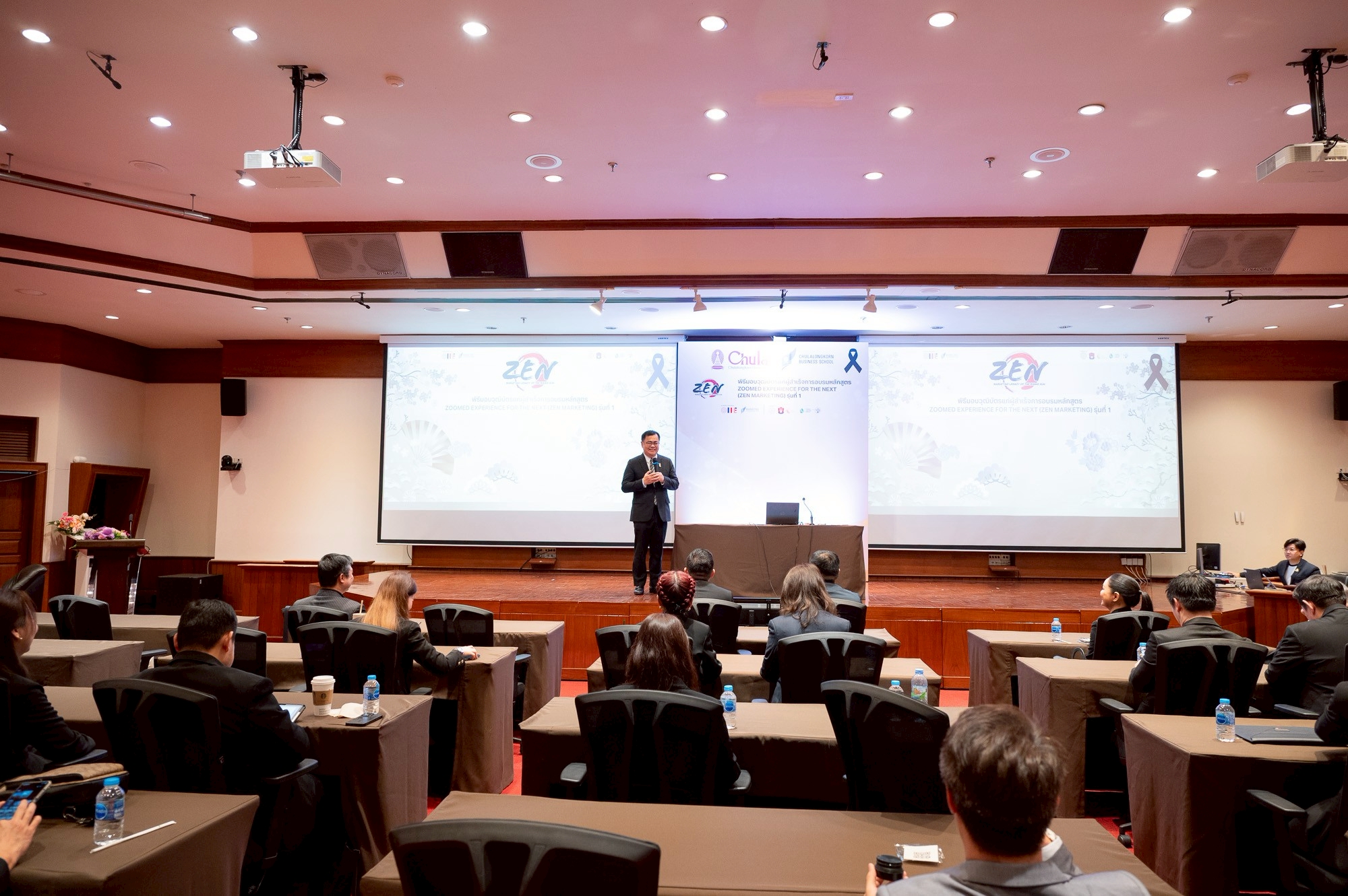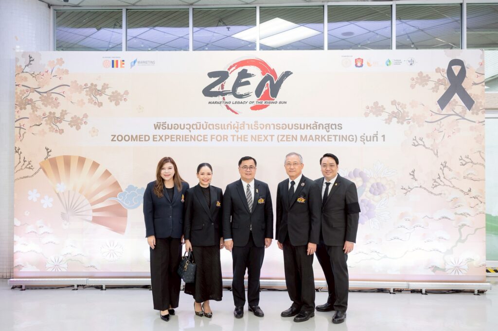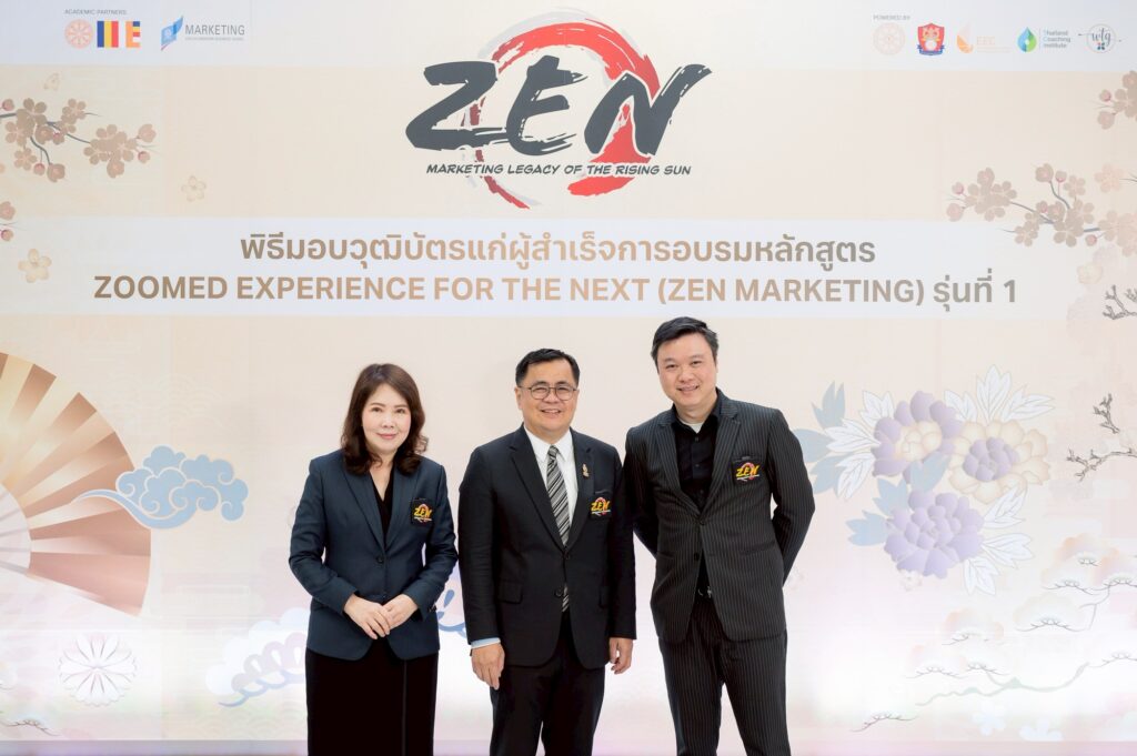 ภาควิชาการตลาด คณะพาณิชยศาสตร์และการบัญชี จุฬาฯ จัดพิธีมอบวุฒิบัตรหลักสูตร “ZEN: Marketing Legacy of the Rising Sun” ผสานศาสตร์การตลาดและปรัชญาญี่ปุ่น เพื่อธุรกิจที่เติบโตอย่างยั่งยืนเมื่อวันที่ 1 พฤศจิกายน 2568 ณ ห้องประชุมชั้น 7 สำนักงานวิทยทรัพยากร จุฬาฯ โดยมี ศ.ดร.วิเลิศ ภูริวัชร อธิการบดีจุฬาฯ บรรยายพิเศษในหัวข้อ “Consumer Behavior Design” กล่าวแสดงความยินดีและเป็นประธานมอบวุฒิบัตรแก่ผู้สำเร็จการอบรม