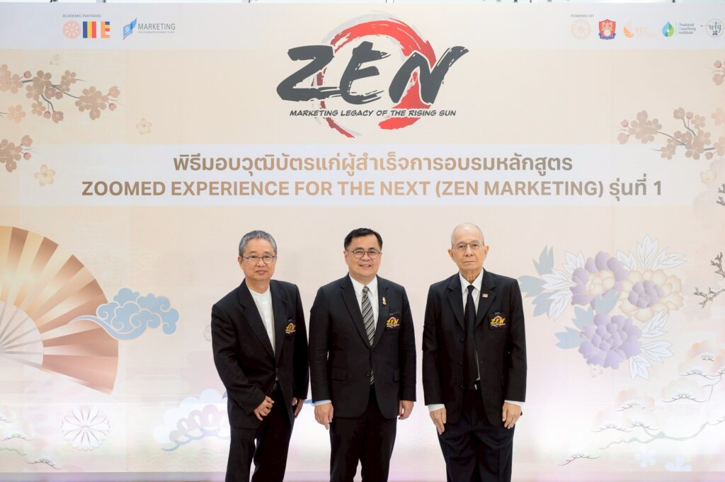หลักสูตร ZEN: Marketing Legacy of the Rising Sun จัดโดยภาควิชาการตลาด คณะพาณิชยศาสตร์และการบัญชี จุฬาฯ ร่วมกับ องค์การพุทธศาสนิกสัมพันธ์แห่งโลก (พ.ส.ล.) เน้นการเรียนรู้การตลาดเพื่อความอย่างยั่งยืนแบบญี่ปุ่น มีจุดเด่นคือ การเรียนรู้การตลาดและปรัชญาธุรกิจญี่ปุ่นจาก ZEN Gurus ทั้งจากไทยและญี่ปุ่นกว่า 20 ท่าน ประสบการณ์ Dinner Talk Session สุดพิเศษใกล้ชิดกับ ZEN Gurus การศึกษาดูงานแบบ Executive Trip ณ องค์กรระดับตำนานในประเทศญี่ปุ่น โอกาสในการทำ Business Matching กับบริษัทญี่ปุ่น และการแลกเปลี่ยนประสบการณ์กับผู้เรียนระดับผู้นำจากหลากหลายวงการ