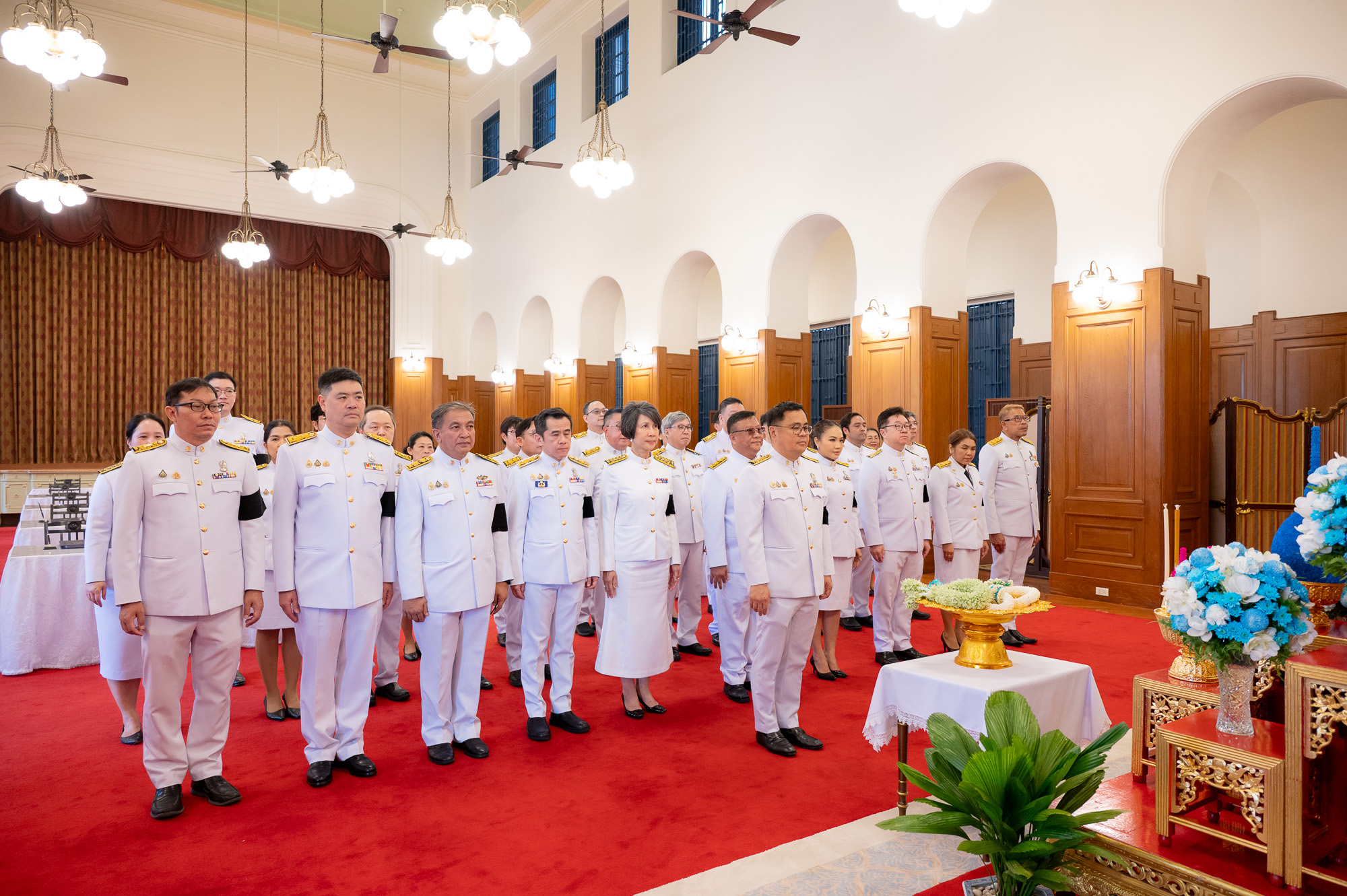ศ.ดร.วิเลิศ ภูริวัชร อธิการบดีจุฬาฯ นำคณะผู้บริหารจุฬาลงกรณ์มหาวิทยาลัย ร่วมพิธีวางพวงมาลาถวายสักการะสมเด็จพระนางเจ้าสิริกิติ์ พระบรมราชินีนาถ พระบรมราชชนนีพันปีหลวง ณ ด้านข้างพระที่นั่งดุสิตมหาปราสาท ในพระบรมมหาราชวัง เมื่อวันที่ 3 พฤศจิกายน 2568 ในโอกาสนี้ ผู้บริหารจุฬาฯ ร่วมลงนามแสดงความไว้อาลัยแด่สมเด็จพระนางเจ้าสิริกิติ์ พระบรมราชินีนาถ พระบรมราชชนนีพันปีหลวง ด้วยสำนึกในพระมหากรุณาธิคุณอย่างหาที่สุดมิได้