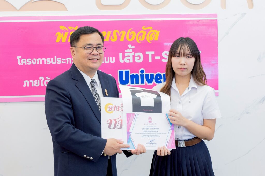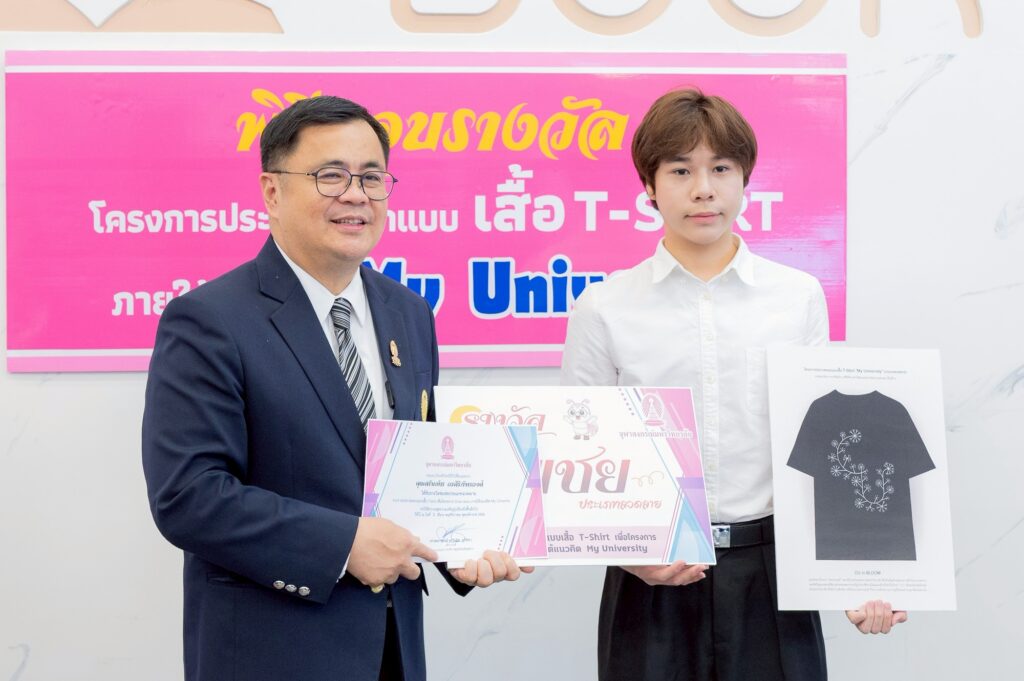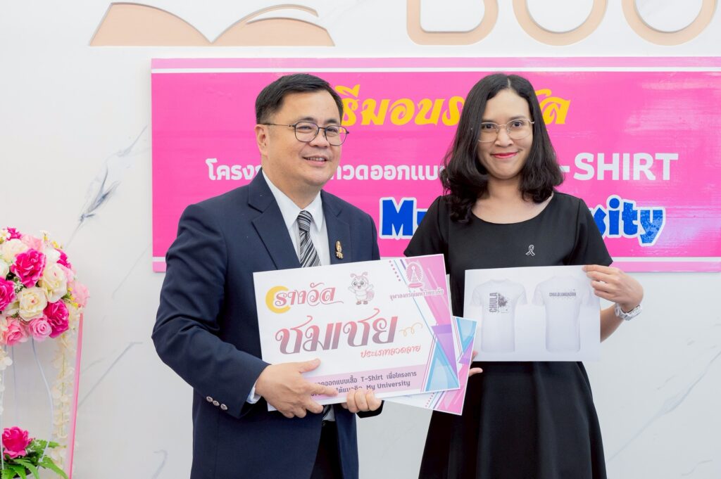 ศูนย์หนังสือจุฬาฯ จัดพิธีมอบเงินรางวัลและประกาศนียบัตรให้กับผู้ได้รับรางวัลการประกวดออกแบบเสื้อ T-Shirt ภายใต้แนวคิด “My University” โดยมี ศ.ดร.วิเลิศ ภูริวัชร อธิการบดีจุฬาฯ เป็นผู้มอบเงินรางวัลและประกาศนียบัตร เมื่อวันที่ 3 พฤศจิกายน 2568 ที่ศูนย์หนังสือจุฬาฯ สาขาสยามสแควร์