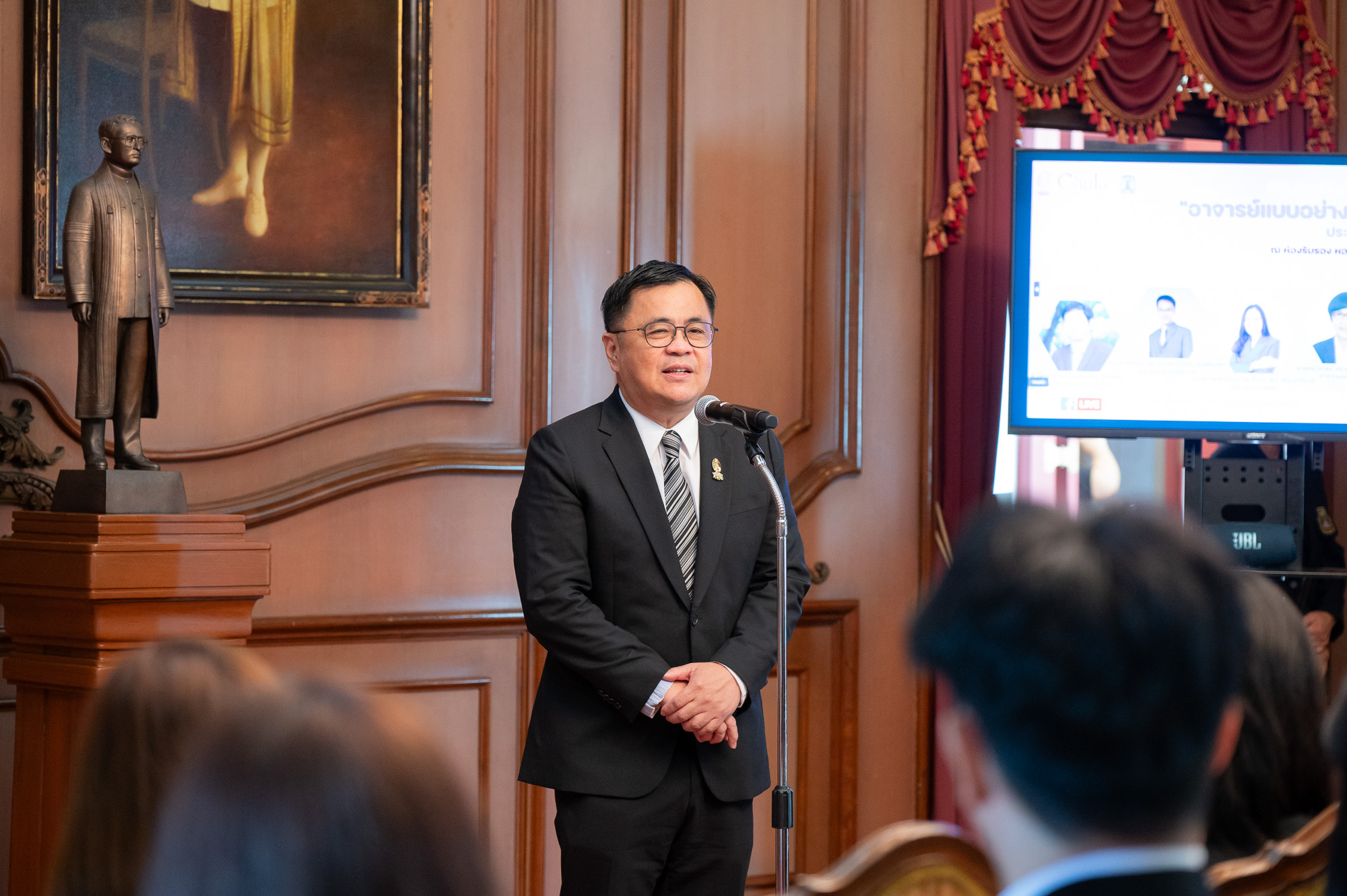 สภาคณาจารย์จุฬาฯ จัดพิธีมอบรางวัลประกาศเกียรติคุณ “อาจารย์แบบอย่างสภาคณาจารย์” ประจำปีการศึกษา 2567 เมื่อวันที่ 31 ตุลาคม 2568 ณ ห้องรับรอง หอประชุมจุฬาฯ เพื่อยกย่องเชิดชูเกียรติคณาจารย์จุฬาฯ ผู้มีผลงานดีเด่นในสาขาต่าง ๆ เป็นแบบอย่างที่ดีแก่คณาจารย์จุฬาฯ โดยมี ศ.ดร.วิเลิศ ภูริวัชร อธิการบดีจุฬาฯ มอบโล่เกียรติคุณและประกาศนียบัตรแก่ “อาจารย์แบบอย่างสภาคณาจารย์” ประจำปีการศึกษา 2567 ศ.ทัชมัย ฤกษะสุต ประธานสภาคณาจารย์ กล่าวต้อนรับ และ รศ.ณัฐพร สุดดี ประธานคณะอนุกรรมการกิจการคณาจารย์ กล่าวรายงาน